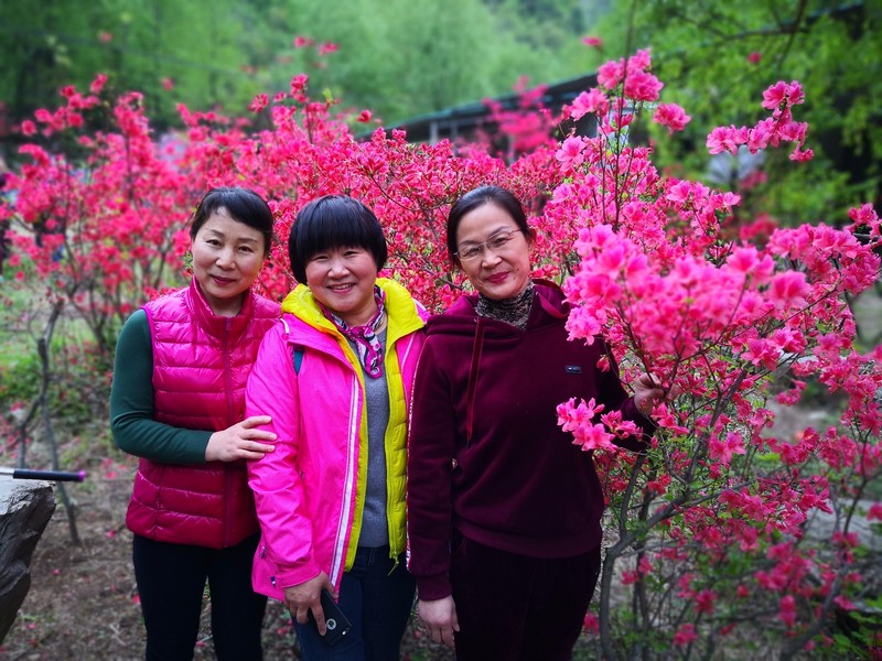 嗨!龙潭峡,我们来啦! ~~诗景龙潭峡游记 在这个百花盛开,青翠欲滴的最美季节,伴着春光明媚,和风物语!我们一行五十多人,乘车来到了诗景龙潭峡一日游。 这里青山绿水,杜鹃啼血;这里飞瀑垂挂,小溪潺潺;这里廊桥回旋,青石横呈;一路欢声,一路笑语!是谁,人比花娇映山红,是谁,林中仙子迷精灵;美不胜收入诗意,人间芳菲揽画景! 徜徉在美景中,享受着天然养吧的厚爱,醉了你,醉了我;此情此景怎能不留下记忆!嗨:帅哥!给我来一张,呀:美女,往这里看!是人在景中游,还是画从景里来! …… 深呼吸,大声喊:龙潭峡……我来了!我爱你!
