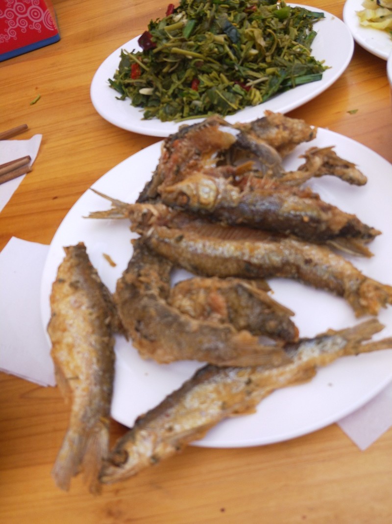 开饭啦!玩了大半天,队员们都早已饥肠辘辘,干炸丹江小鱼刚一上桌不等我拍照大家已各自夹走一条开吃了......