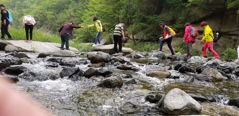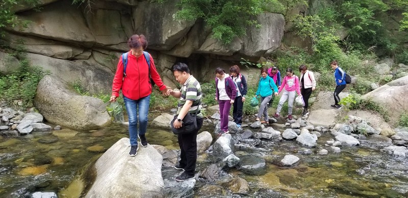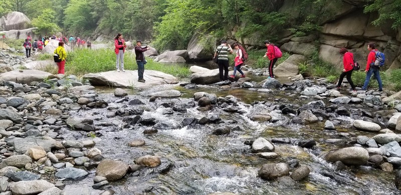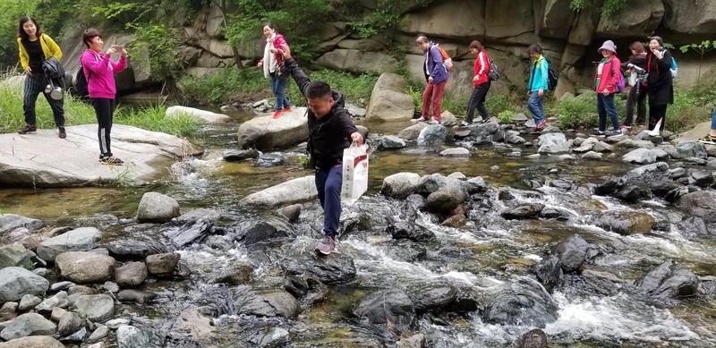 此情此景,有没有一点说走就走的冲动,清澈见底的溪流,热情洋溢的铁粉,排起一条舞动的长龙,你拉着我,我扶着你,时不时的还和大自然来个亲密的接触,你沾了泥巴,他湿了裤脚,却阻挡不了我们呢热情似火的激情和呢颗按耐不住的❤心