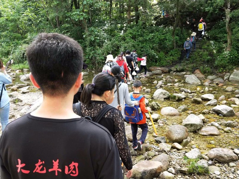 翻山越岭,到达瀑布脚下,支锅,捡柴,烧水,包饺子了