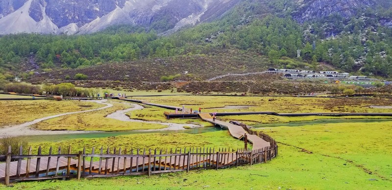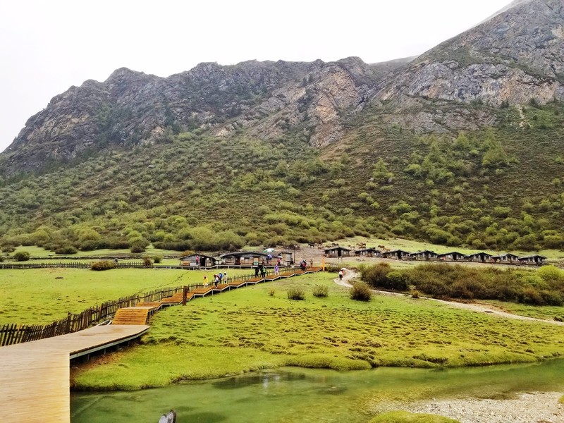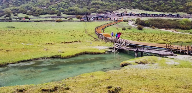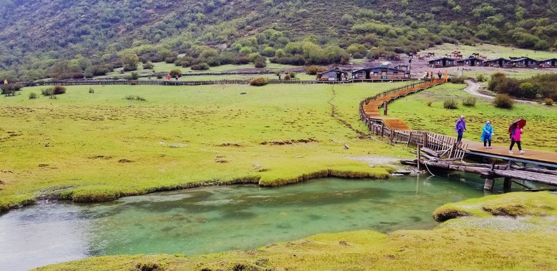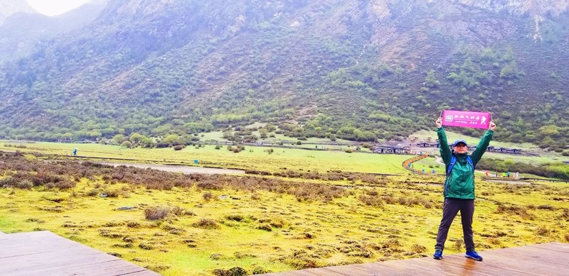 天空中雨还在淅淅沥沥的下着,我们顺着栈道已经走了将近两个多小时了,虽然下着雨,但每走一步都想掏出手机赶紧拍上两张,就这样一路走,一路拍,不知不觉中我们也来到了洛绒牛场,坐电瓶车到洛绒牛场的姐姐哥哥们早已等候我们多时了