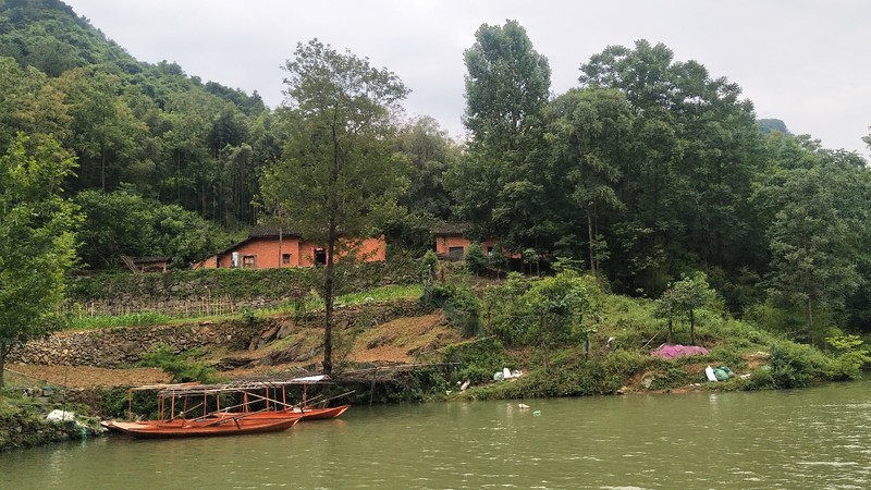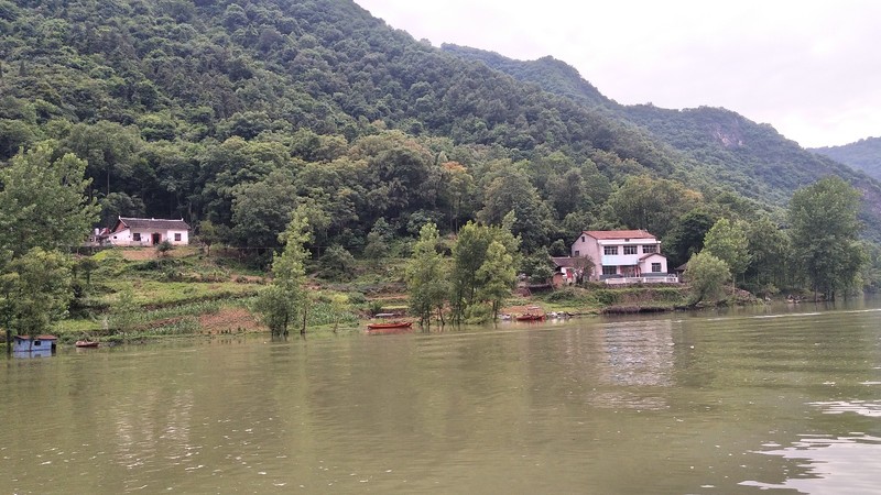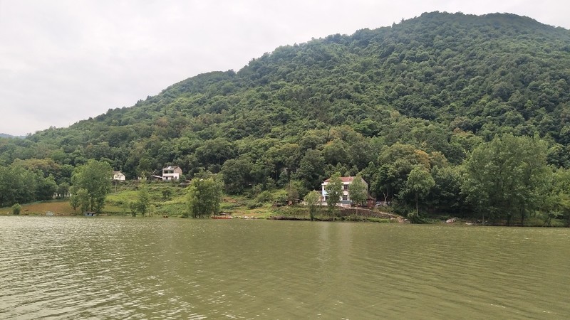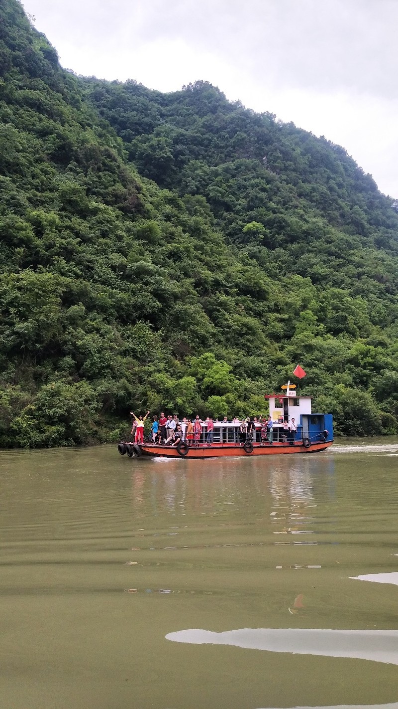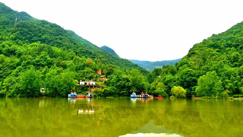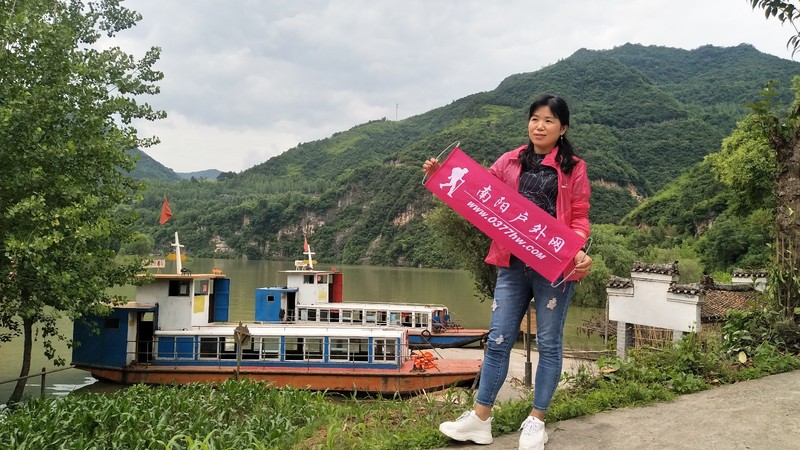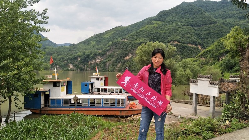 目的地很快到达了,我们提前联系与南阳户外网相交已久的农家,五荤五素aa每人25元。厚道的农家菜分量很足,十人一桌还没吃完。众人皆大欢喜。可惜我们去办票,没有拍照饭菜,吃完我们登船向着快乐出发。一路上,青山绿水,船在水中游,人在画中行。两岸小村庄坐落于山水之间,门前一艘小舟。怎不像又一副油画。不时河鸟飞过,声诉着快乐。