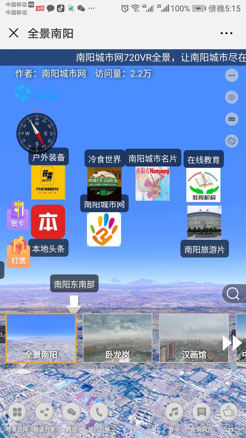 南阳城市网公众号菜单进入全景模式,可查看南阳VR全景地图