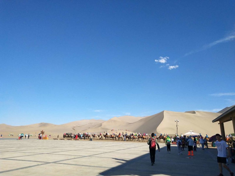 夜已深,但是敦煌的夜生活还没结束,今天下午我们去了鸣沙山月牙泉,看到了真的沙漠,我既兴奋又担忧,骑了骆驼,感受到了丝绸之路的驼队的艰辛,月牙泉的神奇,如果说莫高窟是佛教文化的底蕴,那么这里就是大自然赋予敦煌的神奇