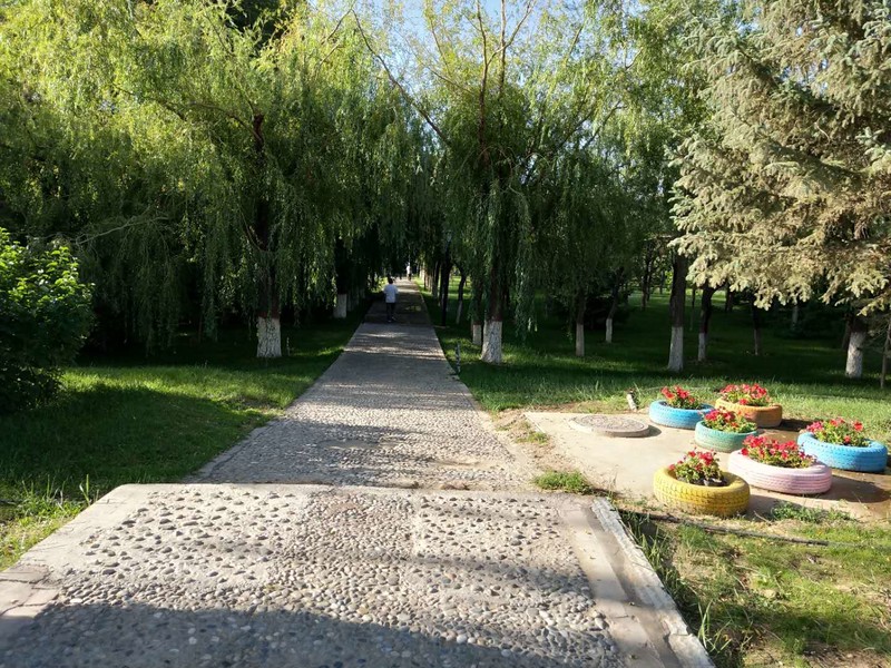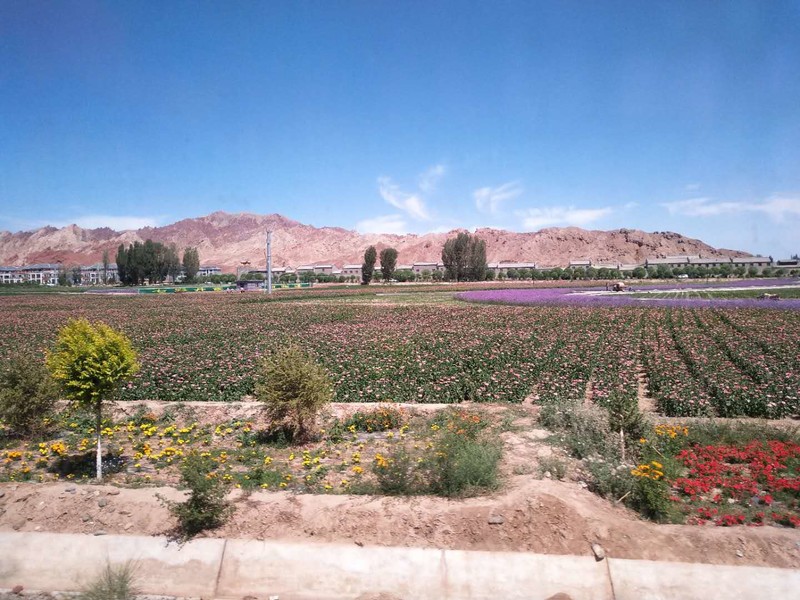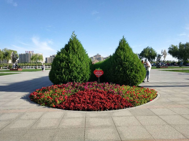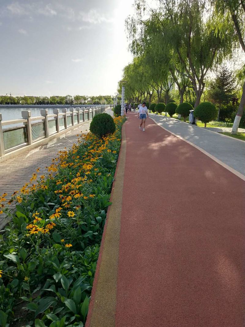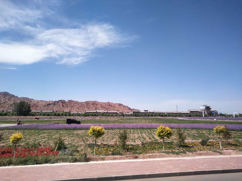 ,嘉峪关的美食很多,羊肉粉汤,酸枣油饼,杏皮水,酿皮,羊肉串,酸汤面片,我都吃了,味道不错。以后来的队友一定也要品尝,在这里我还看到了久违的花朵,这一路的戈壁滩让我对绿色特别向往