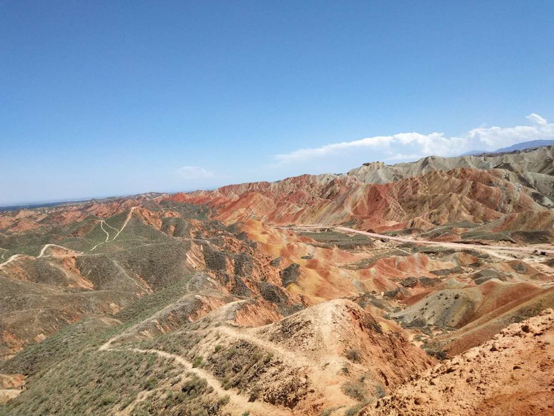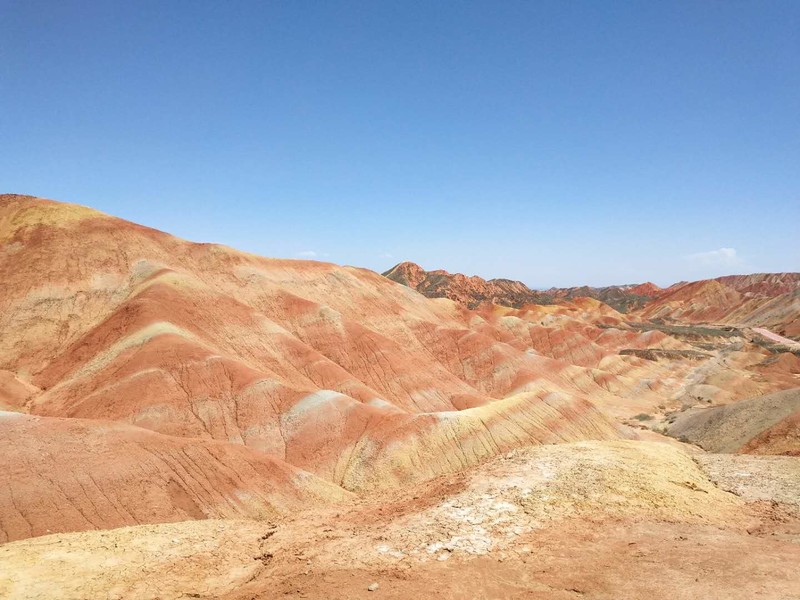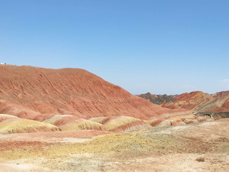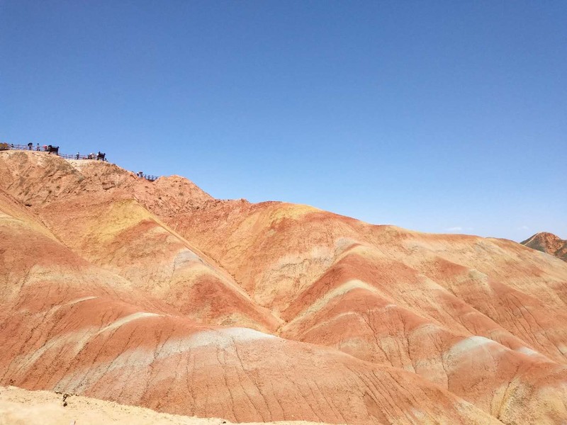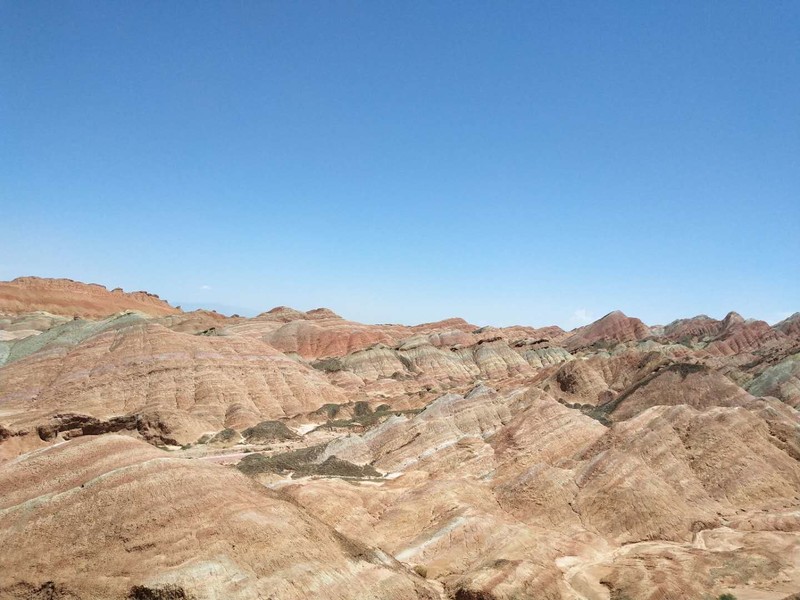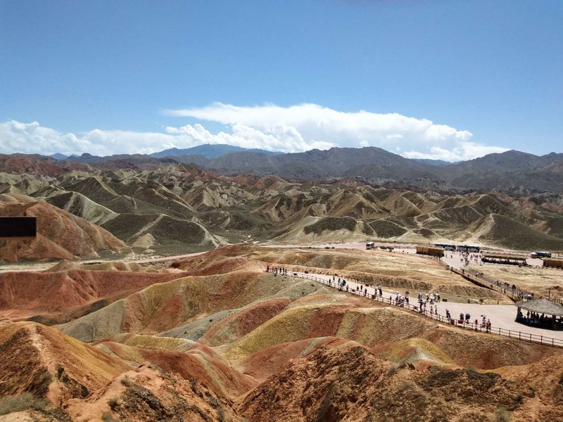 然后就迫不及待的去看七彩丹霞了,一路上我们也看到过丹霞地貌,但是当我们亲眼看到这里的丹霞地貌时,还是被震撼了,大自然的鬼斧神工,画家笔下的调色板,像大地喷洒炽焰烈火,似山峰披上五彩霓裳!
