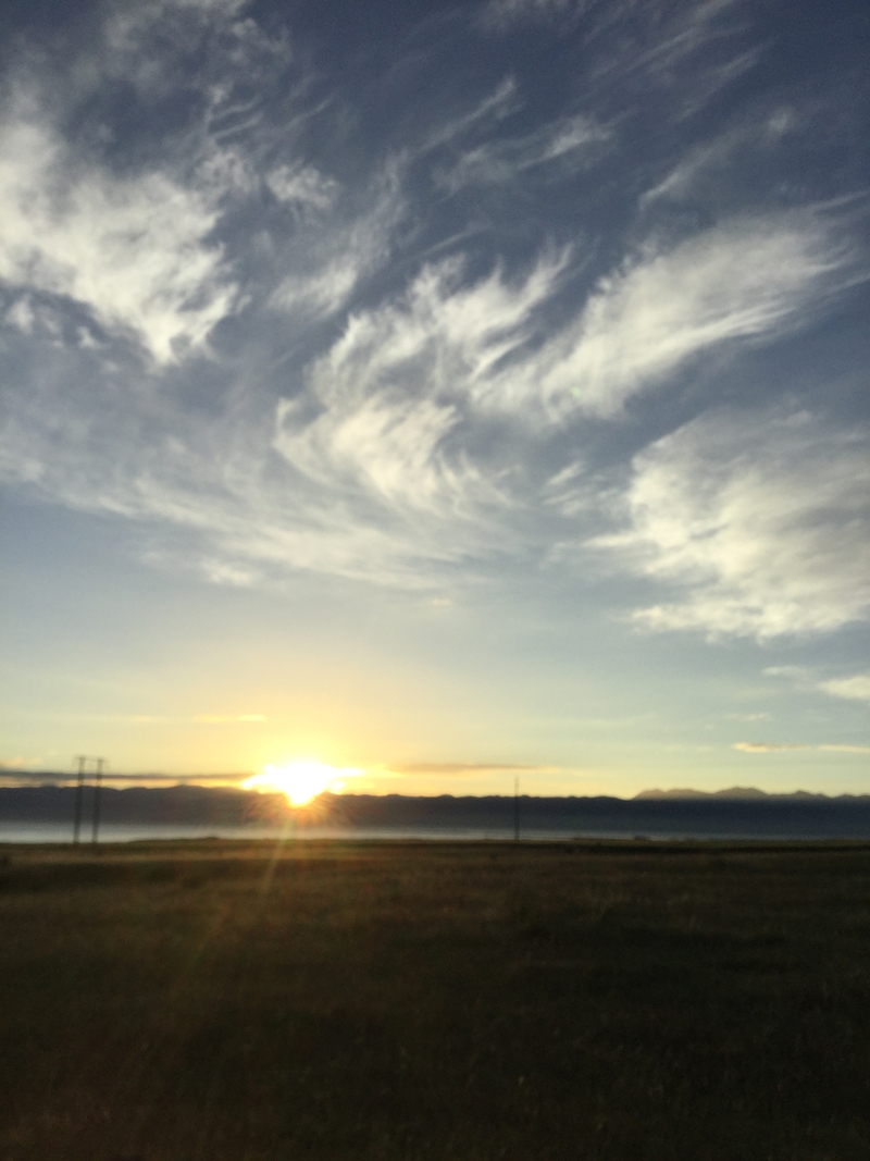 第二站:青海湖 青海湖,拥有中国最蓝的湖水,最美的高山牧场,四周是壮丽的山,山下是一片片金黄的油菜花海,香气扑鼻而来,一簇簇紫色的薰衣草在风中摇曳,湖水与云天融为了一体,既有海的辽阔,又有湖的俏皮,远远看去,就像一幅景色优美的水彩画,我们一路欢呼着奔向它的怀抱。 晚上大家一起聚餐,吃烤全羊,品青稞酒,兴奋到很晚。负责的领队一个个问大家有没有高反,对高反的队友更是关怀备至。一大早大家又兴奋的爬起来去湖边看日出,感受日出时刻的璀璨壮观!