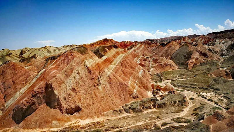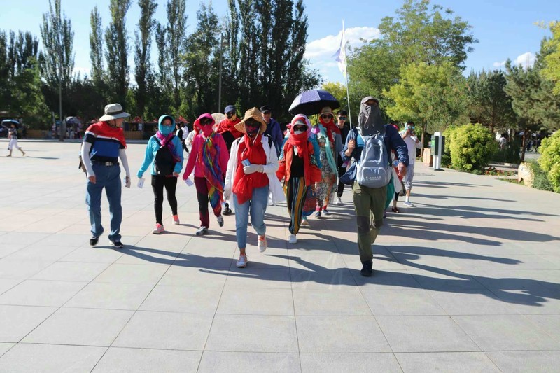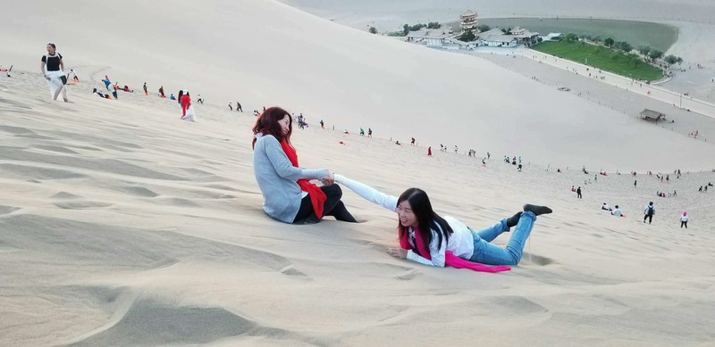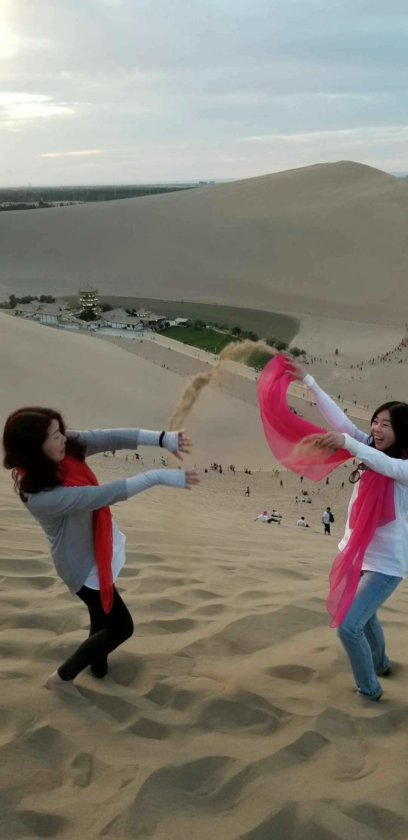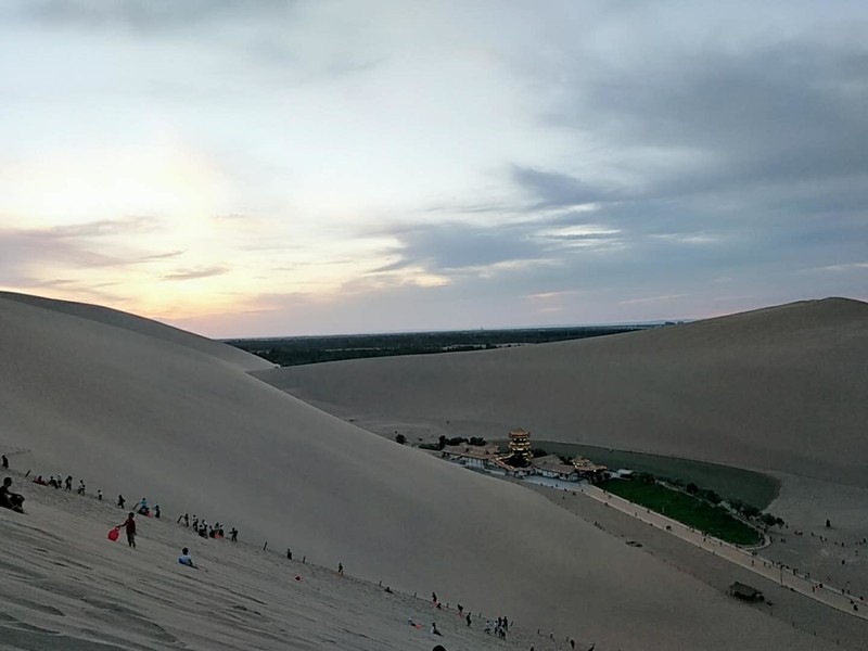 如果说此次西北行目的就是敦煌有点儿狭隘,一路走来我们领略了青海湖的壮阔,雪山的巍峨,戈壁滩的广袤,雅丹地貌的奇特,还有茶卡盐湖的净彻,但莫高窟绝对是此行的重彩浓墨。 关于莫高窟也有神奇的传说:相传,敦煌有一位名叫乐尊的和尚,当他经过三危山时,山上忽然出现万道金光,三座危峰上的金光化成“三世佛”,四周无数菩萨诵经说法,飞天仙女飞舞散花。他顿感三危山上的金光就是佛光显灵,便四处化缘,在三危山对面的鸣沙山上开凿了第一个石窟。后来相继又有10个朝代,1000多年时间,开凿了大量的石窟。在唐代,莫高窟已有1000余窟。而由于自然损坏和人为破坏,现仅存不到500窟。 因为正值暑假,各个景区都人满为患,莫高