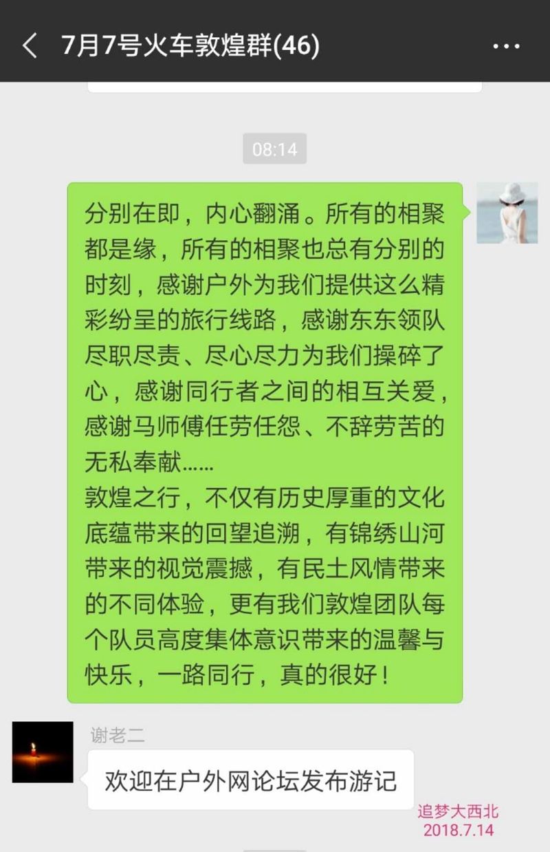 几天来的相处,时刻感受到东队尽职尽责、一心为大家着想的高素质修养。路上听了东队风趣幽默的自述,感觉这是一个颇有情怀和责任心的领队。