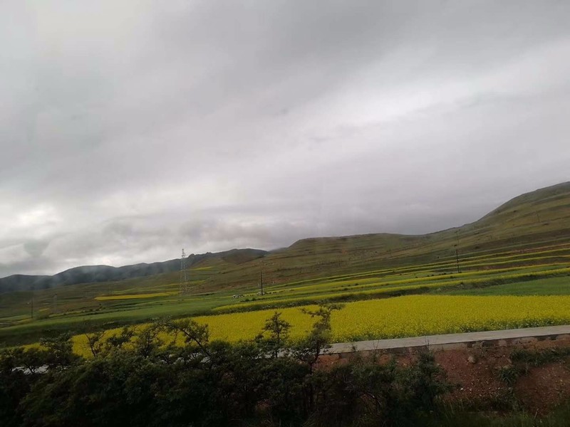 此刻,我们在塔尔寺前往青海湖的高速上,天阴,有雨,光线不是很好,气温在20度左右,两侧的油菜花刚刚开放,比我们那里整整晚了一个季节,特别感慨祖国的博大:从东到西,有人在过夏,有人在过冬。大西北并没有象我想象的那么荒凉,高速两旁,满眼的绿色植被,地广而人稀。偶见开宝马摩托车的青年和我们一样驰聘在这条大路上,可惜车速太快,木有拍到特写,奔跑吧,青年,在我们同样热爱的祖国大地上。