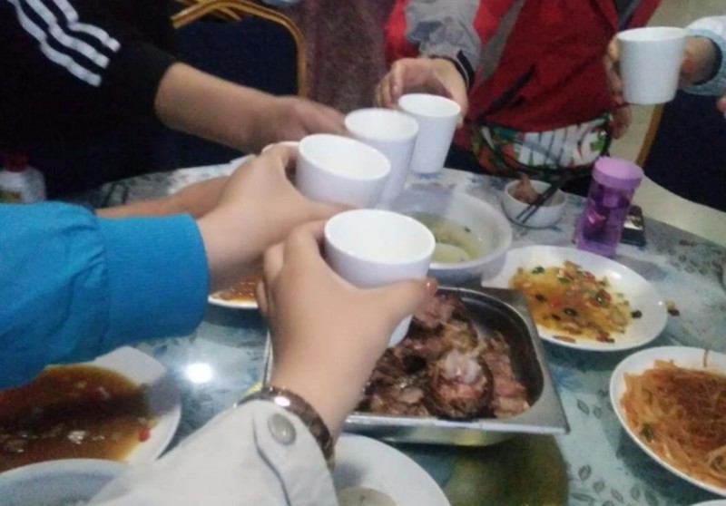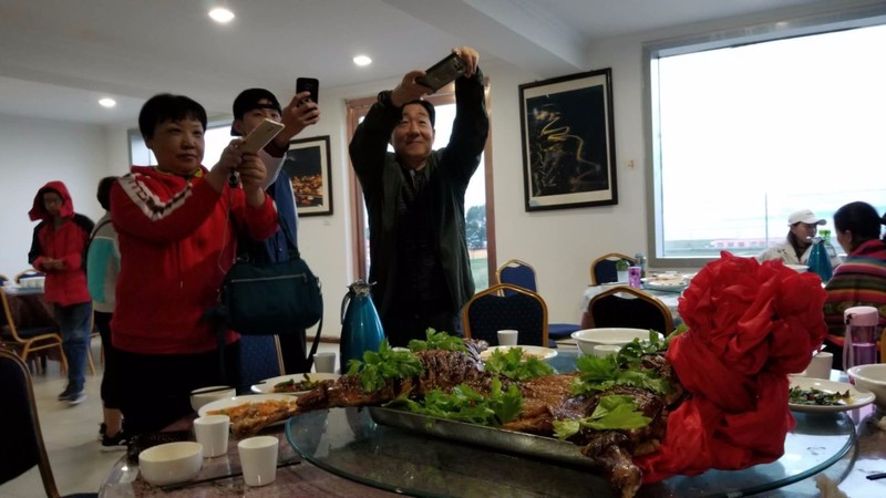 当日的晚餐,正宗的烤全羊,也就是图中的这么一举杯,真正开始我最快乐而美丽的旅途(后面会有说明)
