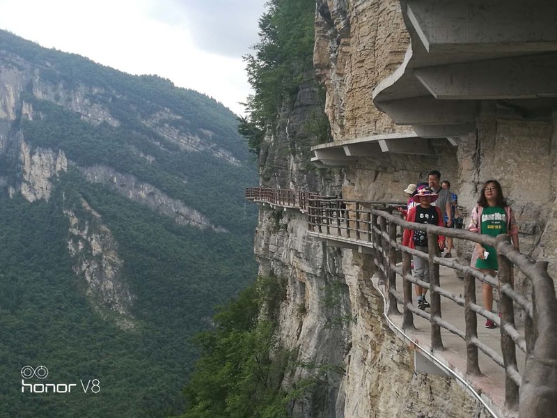 一行十六人像一个大家庭,在谢大忽悠的率领下,驰高速,穿隧洞,行山路,千里迢迢; 嬉泉水,乘皮筏,坐浮船,其乐无穷; 攀峭山,游栈道,登陡梯,气喘吁吁, 探地缝,越峡谷,赏美景,流连忘返; 吃山味,品美酒,听雷声,雨中即情。 时间总是短暂,美景留恋难舍;欢乐永镌脑海,期待下次畅游。 最后这段总结的完美,文美图美,期待再次同游。