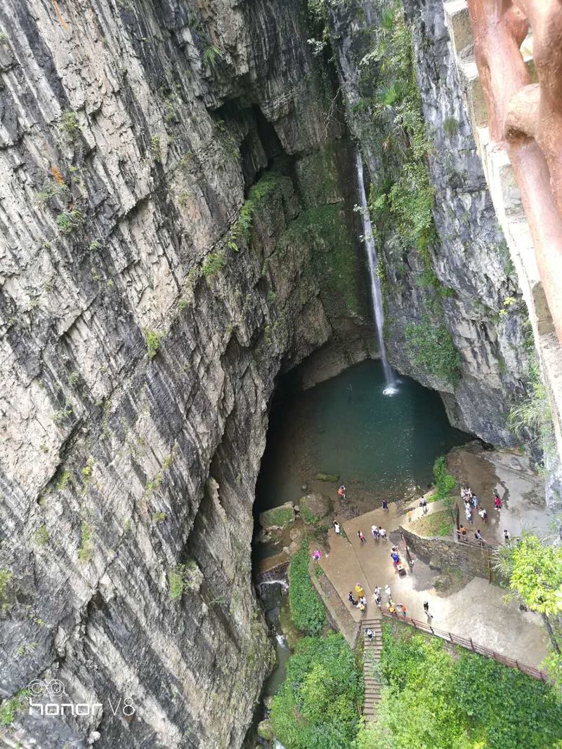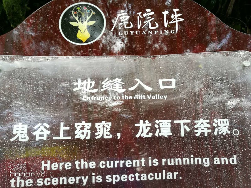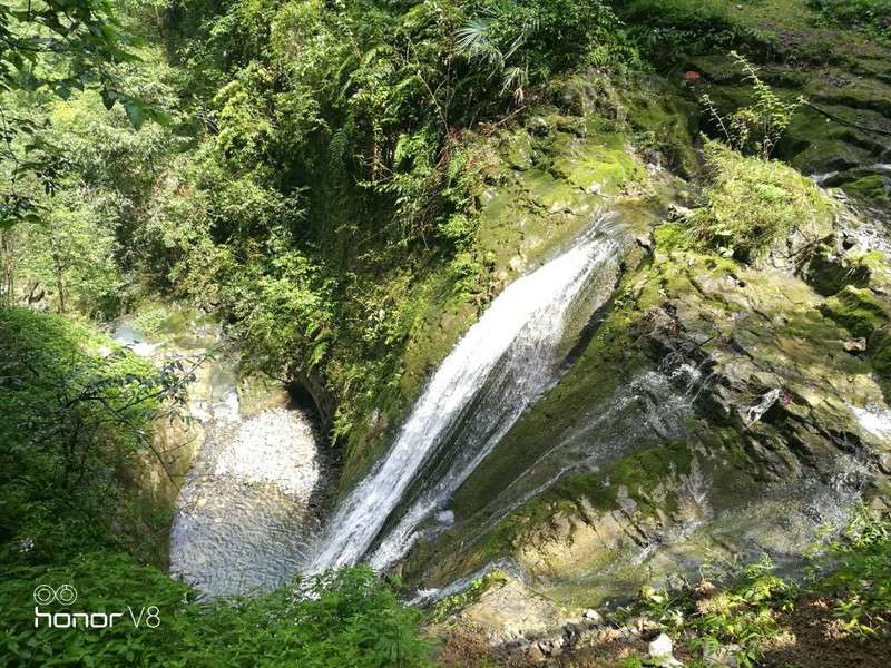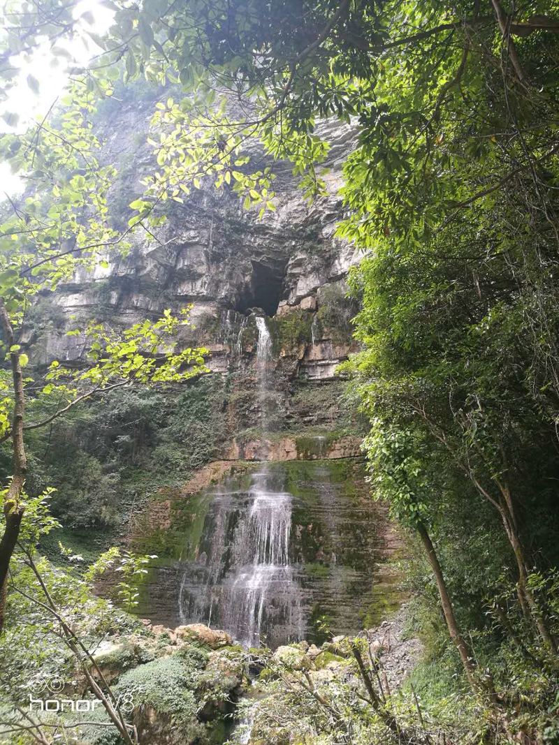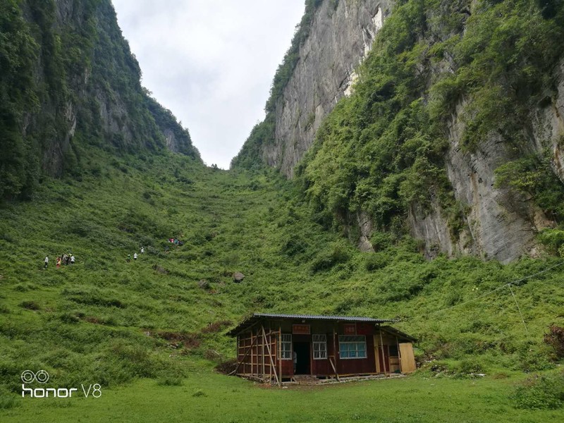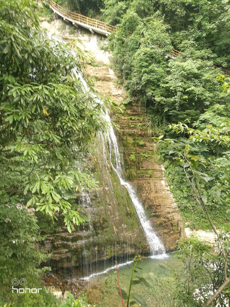 鹿院坪篇 21日清晨,在宾馆吃完早饭,我们乘车前往新田村,两个多小时的山路到达鹿院坪景区大门口。 鹿院坪位于恩施大峡谷开发区内的恩施市板桥镇,平均海拔1700米,是一个与世隔绝的现代“世外桃源”,这里交通不便,只能徒步进村。村落四面环山,悬崖构成了一道天然屏障,进出仅有四条小径,形似一个硕大的条形天坑;有两条河流,一条叫刘廖河,一条叫中间河,鹿院坪即在中间河流域,深陷峡谷地缝中,四周绝壁环绕。从山上桥湾垭口到谷底桥湾,垂直落差500多米,从悬崖上凿路下去,因用了数十道之字拐,则要走1000多米当地人叫“四十二拐”的山间小道共有1900多级台阶,差不多一公里路,这是目前为止唯一一个不通公路的村落。 这里的村民的房屋多数是以吊脚楼为主,木板式结构,四周有栏杆,通风、保暖,瓦顶小楼,楼上住人,楼下关牲口、堆杂物。这些古老建筑,凸显土家族传统建筑风貌,堪称“活化石”。村民还沿袭祖辈的耕作方式。自种茶叶,自煮酒,凿饮山泉,采集中药材,做饭用木柴,冬天取暖时,多就地取材,出门就能挖到煤。现在,家家户户都有石磨、水磨、石缸、风车、独木风箱、木柜物器等生产生活工具。 相传:明末清初,因战乱造成四川及相邻地区人口锐减,土地荒芜,朝廷实行“江西填湖广,湖广填四川”的迁移政策,大批的湖南人迁移恩施地区。湖南常德府桃园县裴科嵩、裴科乾、裴科禄兄弟等3人(一说是裴氏三兄弟因家乡“水灾”)迁徙到施南府恩施县北(今板桥乡新田)。鱼米之乡的人,离不开水稻,可他们试种从家乡带来的稻谷种,只开花不结籽,他们意识到是因为“地势”高了,不适合水稻生长的原因,便趁“大雪天”在周边地区,寻找地势较低的地方。终于有一天,他们在“玉笔锋”的山口,观察到峡谷底部有一大片树木葱郁的地带,没有积雪,但无路下去,便在(今鹿院坪河坪口)悬崖上用36匹白布,裹着身体,揪着白布,滑吊到崖底,见这里古木参天,两边高山耸立,中间平坦,一河中流,百瀑边悬,气候温润,土地肥沃,认定适合水稻生长,十分高兴。但回去的时候,挂在悬崖上的白布被飞虎(鼯鼠)(误以为是食物)咬断,无法上去,且干粮已吃完,正着急,忽然见一群美丽的山鹿沿河向上(今桥湾),往山崖上走,他们小心翼翼地便跟着鹿走,终于爬上悬崖顶。在后来的日子里,他们从这里凿路到崖底,在这里开荒垦田,种植水稻、玉米、油菜、茶等农作物,并获得巨大成功,裴氏人便从新田迁居这里。 这里的美是纯天然不经任何修饰的,悬崖峭壁,高空瀑布,清幽水潭,鸟语花香,不容错过。天晴得像一张蓝纸,几片薄薄的白云,像被阳光晒化了似的,随风缓缓浮游着。清清的溪水潺潺的流着,像仙女身上美丽的飘带,在山涧的石头上划过一丝丝痕迹···天蓝得像一汪海水,几朵飘悠悠的白云,洋洋洒洒地点缀在天空中,像一个美妙的老人的梦。 密林、瀑布、深潭、溶洞、天坑地缝、绝壁栈道……有驴友形容其为:天坑藏地缝,险崖挂溶洞,奇峰刺青天。似乎每一种美景,都能在这里被发现。 这里是一个未经开发完毕的、原生态的、仿佛与世隔绝的地方,周围被陡峭的山崖环绕。目前,正在建景区大门的配套设施,整个鹿院坪来的人不是很多,因为交通不便,大多以驴友,徒步爱好者为主,所以较为原始。 鹿院坪主要有两个景点,山上的瀑布和山下的地缝峡谷。 这里四面环山,悬崖构成了一道天然屏障。从山上桥湾垭口到谷底桥湾,垂直落差500多米,从悬崖上凿路下去,因用了数十道之字拐,则要走1000多米。 走进景区大门,沿着悬挂在山壁上的栈道行走二十分钟,来到了自山顶通向谷底的盘旋阶梯,当地人称‘四十二拐’,山道共1911个台阶,走大约四十分钟就能下到谷底。 站在悬壁的栈道上,俯视峡谷,碧绿的草坪,隐约的农房,多彩的山花,奔流的山泉,使人心情愉悦;遥望远方,绿郁葱葱,山峰叠峦,白云飘飘,让人心旷神怡。沿着四十二拐阶梯盘旋而下,时而绿荫,时而烈日,让初次参加户外运动的一些同伴有点难以适应,产生了畏难的情绪。但在大家的相互鼓励下,总算下到了峡谷。谷底弯曲的小道两旁开满了各色的格桑花,蝴蝶在花丛中翩翩起舞;半山坡上的一池荷叶迎风飘曳,黄金池的水在阳光的照射下犹如金粉拌撒灿灿发光。大家行走在崎岖不平的山道上,顶着炎炎烈日,汗水湿透了后背,在大家精疲力尽,步履蹒跚,饥渴难忍之即,终于走到了一所农家院。稍休一会儿,谢大忽悠就让当地土家人带大家去后山赏挂壁瀑布。 但见山峰怪石嶙峋,陡峭险奇,高山流水自山半腰溶洞中蜿蜒而下,经悬崖峭壁形成瀑布,激流百丈,蔚为壮观。 中午在农家院吃完饭,正准备出发去游地缝,突然,一片乌云自山顶飘来,顿时大雨倾盆而降,并伴随着雷鸣电闪。大家只好坐在农家院内,扣手机,侃大山,听山雨,观云雾,另有一番滋味呀! 二十多分钟后,雨停了,山更清新了!眺望远方,云雾缭绕在玉笔峰半腰,犹如仙境一般!大家沿着泥泞湿碌的山道阶梯,穿过地缝入口,路经鹿饮潭、玄鹿地缝、大鹏展翅、三悬洞、银瀑、铜瀑等景点。一路下行,有青山绿水鸟叫蝉鸣相伴,也是轻松自在的体验,植被过于充裕也有不好的地方,无法远眺,不能判断距离,还好耳边溪水落下拍打石头的声音越来越清晰,想着该是快到石阶的尽头了。 从天而降的银链,密布洞口的水帘,上下悬叠的洞穴,翠绿叠嶂的山峦,让人流连忘返。走出峡谷,又来到了令人生