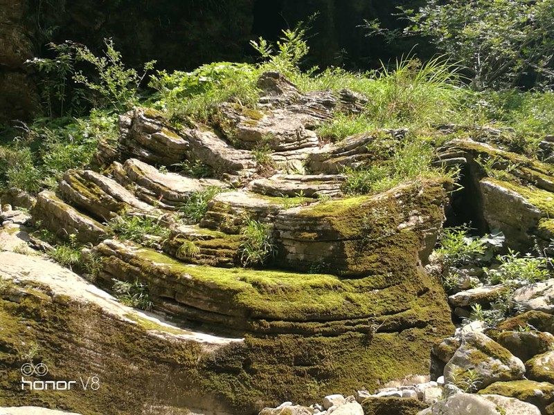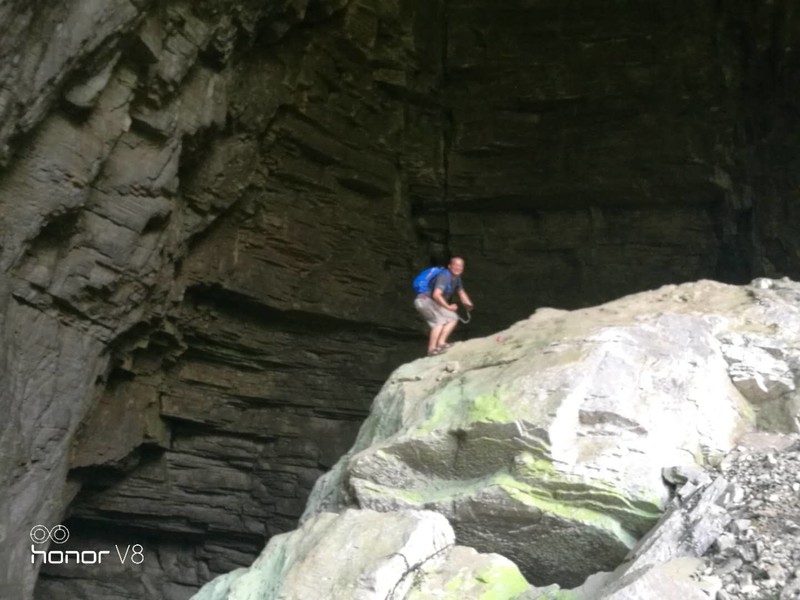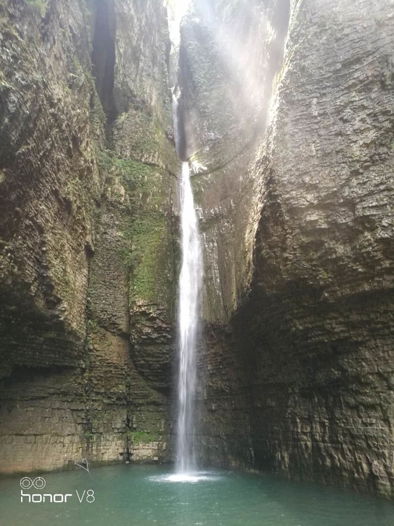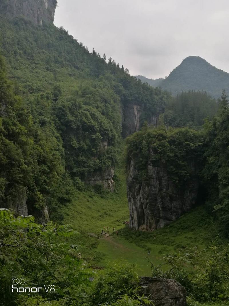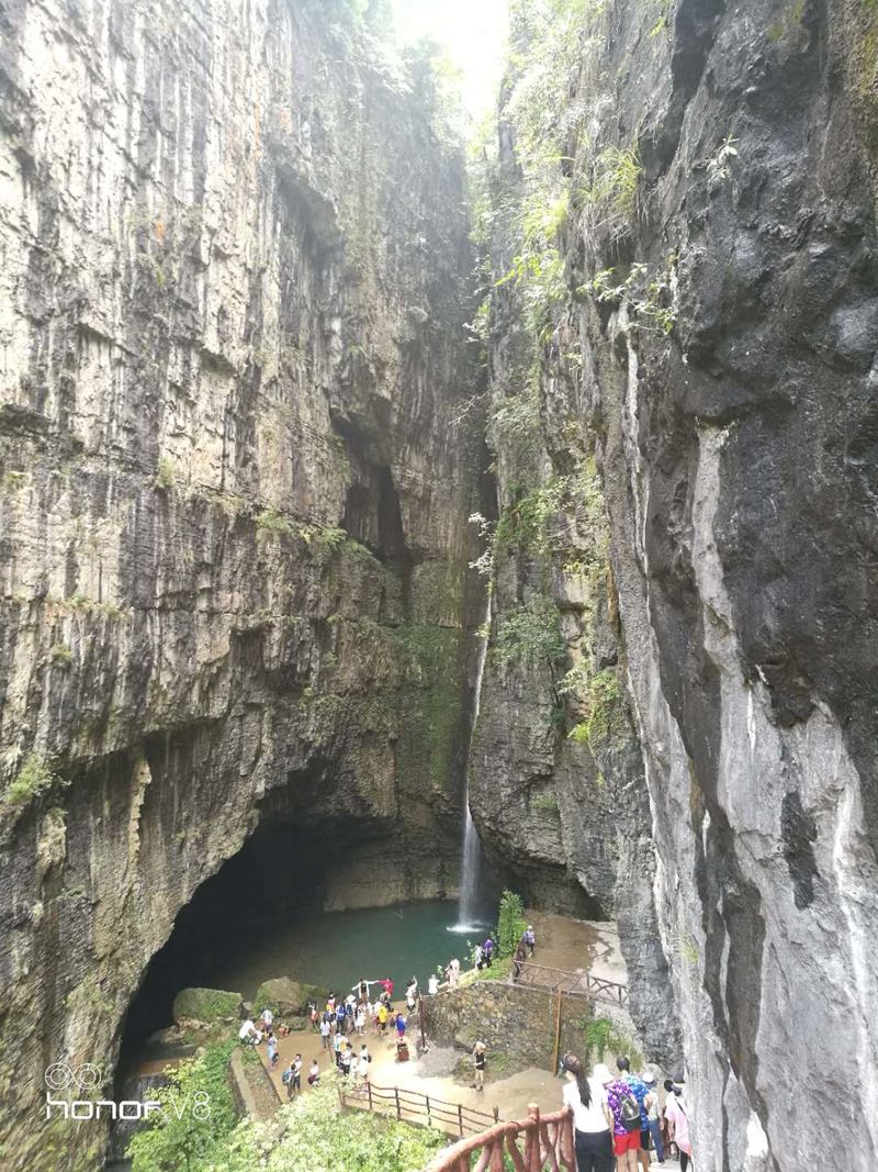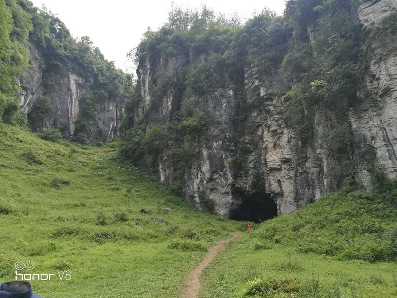 游清江古河床篇 22日清晨六点,从宾馆出发去游玩最后一个景点~清江古河床。经过一个多小时的车程,徒步20多分钟,来到了古河床峡谷的一个入口。有趣的是入口处拴着一头小黄牛,像收费员一样拦着了我们前进的道路,让我们的美女们忘了淑女风范,翻山坡躲避绕道而行。 站在峡谷的垭口远远眺望,好大一片草坪,像绿色的绒毯铺在峡谷,好汉坡与周围连绵起伏的山连成一片,满眼都是那茵茵的绿意,说不出的畅快和欢愉。 从好汉坡向下虽又高又陡又长,弯弯曲曲的的小路如鸡肠子一样绵延不绝,先下去的人身影越来越远,越变越小。道路虽然光滑难行,大家在谢大忽悠的鼓励下、相互帮扶下和、看花人的哨声和大家的欢歌笑语中来到了谷底的绿茵草坪上开始了臭美拍照、撒欢嬉闹。 古河床方圆十里无人烟,风光十分秀美。这里百里绝壁、瀑布飞溅、独峰傲啸、森林原始、村寨古朴。更有一线天、熊猫洞、大小龙门、独家寨、洞群、暗河、地缝、独峰、象鼻山、古河床等景色美不胜收。洞中有洞、洞洞相连、洞中有山、山中有洞、伏流密布、石缝众多,钟乳石林立。 这里既有浪漫的爱情故事,又有神秘的洞穴可探寻,还有悠长的古河床可穿越。 时间在穿越龙洞、行走幽谷、徜徉泉水、仰赏绝壁、遥观飞瀑、醉迷绿荫中悄悄流逝。大家兴致勃勃、游兴悅浓,忘却了登山的疲惫,转眼间已是午时了,由于下午还要返程,大家在老二的督促下,依依不舍地从清江古河床峡谷出来。但干枯的河床、裸露的岩石、像梳子梳理过的植被、耸立的岩壁、层层叠叠的石纹、黑黝黝的山洞等给我们就下了难以忘怀记忆。 在独家寨休息片刻,本想进入世外桃源~爱情谷,去寻觅传说中浪漫爱情的足迹,无奈时间有限,未能前往,就下了淡淡的遗憾。 钻过幽静的溶洞,穿过狭窄的玉米地,顶着炎炎的烈日,来到当地土家族饭庄吃午餐,真的好丰富,有自家腊肉、农家鸡蛋、党参炖土鸡、糖拌西红柿、糖拌笨黄瓜、清炒山野菜、蒸南瓜等,我们一共16人,两大桌饭菜,大家吃的很开心。 饭后坐上着疯狂的过山车,伴着刺激欢愉的尖叫,从送行的小巴车上下来换上我们的大巴车,踏上了返程的路途, 短短的四天行程,给我们留下来难以忘怀的记忆。一行十六人像一个大家庭,在谢大忽悠的率领下,驰高速,穿隧洞,行山路,千里迢迢;嬉泉水,乘皮筏,坐浮船,其乐无穷;攀峭山,游栈道,登陡梯,气喘吁吁,探地缝,越峡谷,赏美景,流连忘返;吃山味,品美酒,听雷声,雨中即情。 时间总是短暂,美景留恋难舍;欢乐永镌脑海,期待下次畅游。