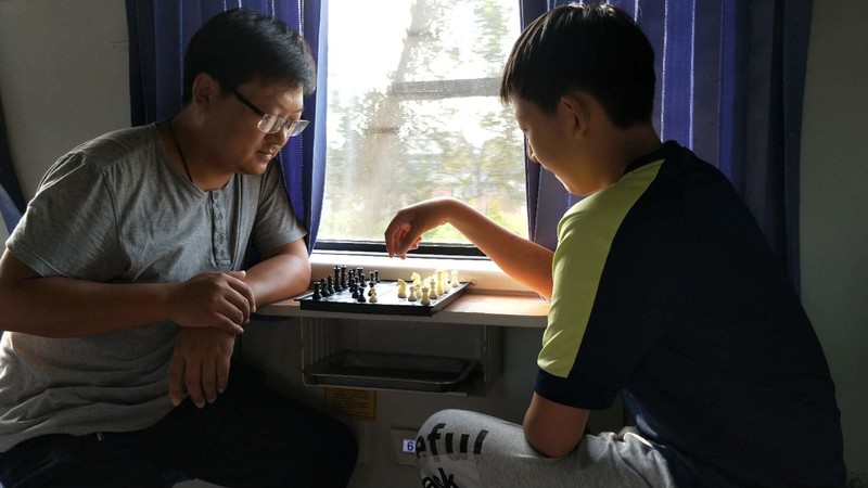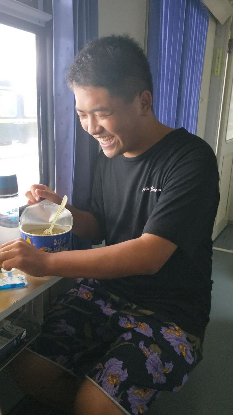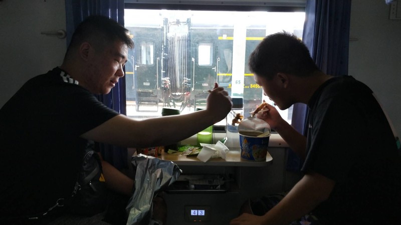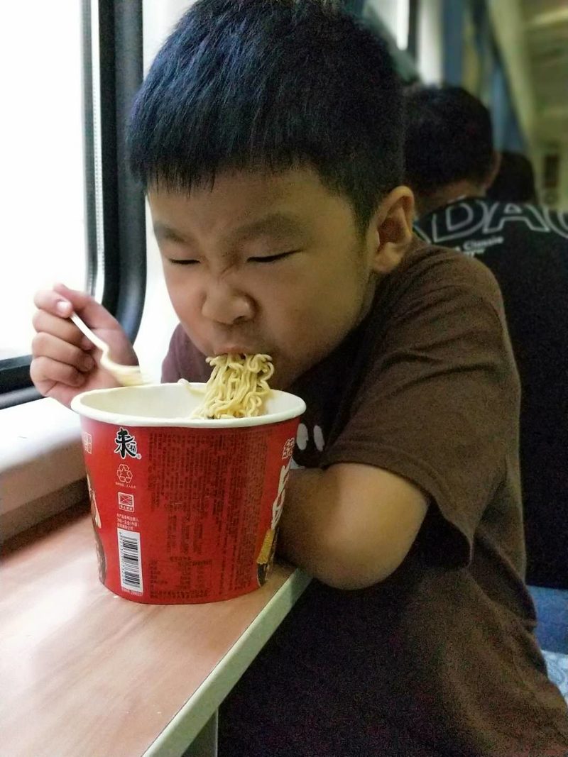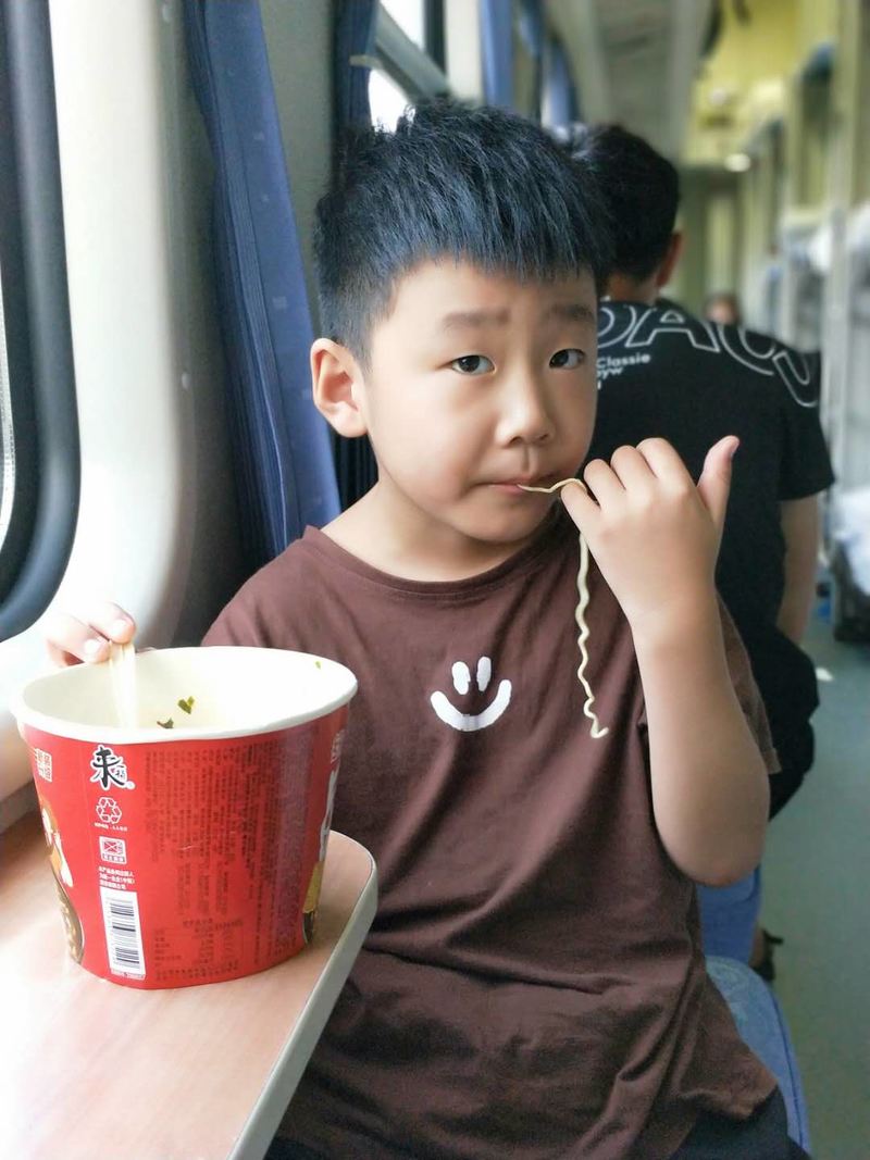 车厢里,父子俩时不时下一盘国际象棋切蹉着技艺,两个从小一起长大一起高中毕业的高大男孩相边吃边聊谈笑风生,最搞笑的是这个可爱的小男孩,一路吃了三桶泡面还不过瘾……喂喂喂,我听说坐火车吃泡面可是标配哦,你也是这么想的吗?