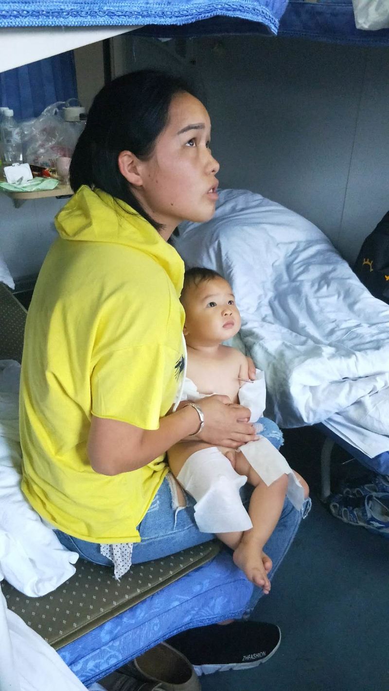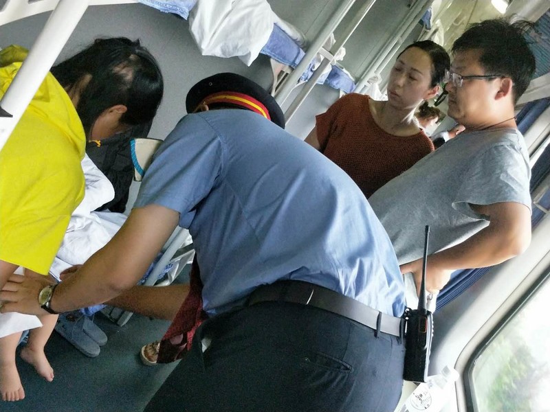 行程第一天:早上6点50左右,列车上广播寻找医生,我当时正好坐在边座,抬头看到我们云南团队二车的一名男队友听到后立刻翻身下床。我跟着他刚来到十四号车厢,他的爱人也紧跟过来帮忙了(二人都是南阳医专的医生)。原来是一名年轻妈妈带着的刚满周岁的孩子夜里就开始发高烧。经过现场询问和测量体温,得知孩子精神状态良好没有其他症状体温38度,夫妻二人指导家长多喂温开水适当腹部保暖并及时观察……注意看最后一张我们热心的男队友的发型