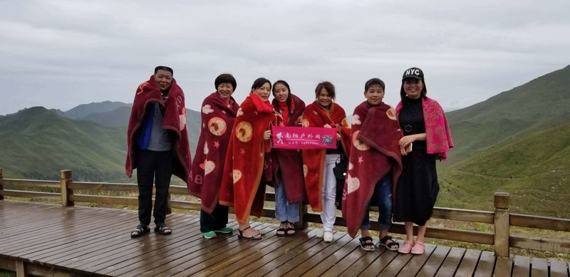 沿途美景尽收下:从塔尔寺到青海湖,随着海拔升高,气温渐降,车外温度已降至个位。但车外景色不错。至海拔最高处,领队让停车拍照。车外的低温已使大家顾不上形象的问题了,能穿的都穿上了,连车上的毛毯也不放过。