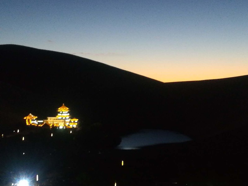 曲折艰辛敦煌路:13日下午4点左右,因省略了茶卡盐湖(并不因没看天空之镜而后悔),提前到达了德令哈,这是一座新兴的城市,宽阔整洁的街道,富有现代化气息的建筑,激流奔腾的巴音河,都让我们感受到这座城市的勃勃生机,诗人海子因一首《姐姐,今夜我在德令哈》又使这座城市名噪中外。吟诵着海子的《面对大海,春暖花开》我们又踏上了前往敦煌的道路,七八百公里行程,一路没有尽头的戈壁沙漠,注定了这又是一次艰辛的跋涉。途经魔鬼城,又让我们领略了雅丹地貌的奇特,只见高高低低的小山丘,连绵起伏,奇形怪状,加之奇怪的名字,总给人一种神秘、诡谲的感觉,不能不使人佩服大自然的鬼斧神工。下午,道路两旁的景色逾加荒凉,沙漠化也更加严重,黄色基本上成了主色调,偶尔闪现的骆驼刺和沙漠红柳已不足以激起人们观景的热情,车上的浑浑欲睡,一群野骆驼的不期而遇引起的惊呼才把我从睡梦中唤醒。短暂的躁动立后,一切又归于平静。本想能在八点前顺利抵达敦煌,没想到当金山完遇大拥堵,绵延十几里,加之手机没有信号,这可难坏了领队东东,为了能把信息传递出去,领队东东冒着寒风冷雨爬上山岭捕捉手机信号,车上的游客们都待心地等待着,一方面为东东的行为感动,一方面还牵挂着车上一个高反严重的孩子,车外寒风凄雨,车内温暖如春,四个多小时的等待,终于迎来了转机,道路通了,晚上十点半,终于到达敦煌,更令人兴奋的是,严重高反的孩子也因海拔的降低而恢复正常。敦煌,我们来了!