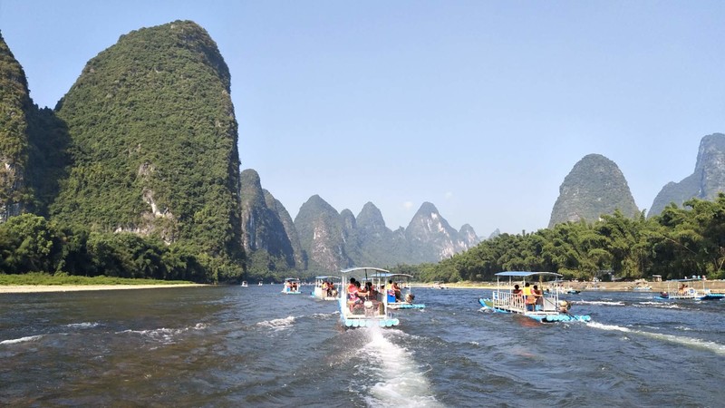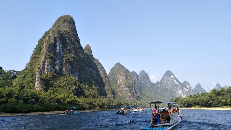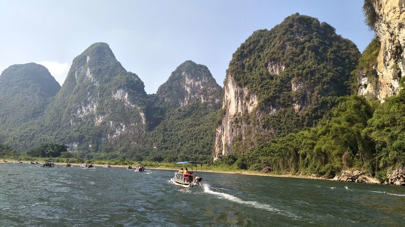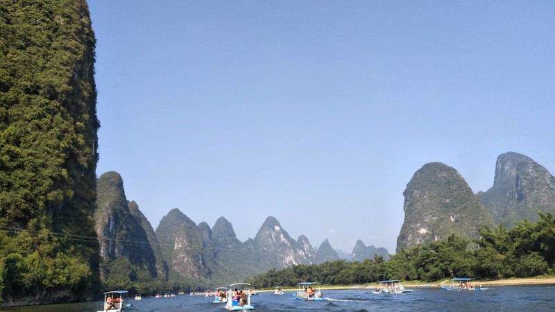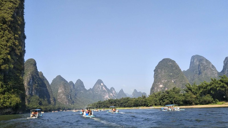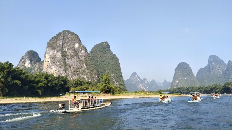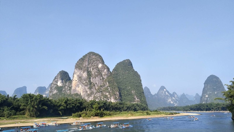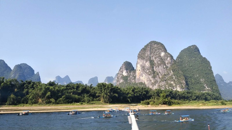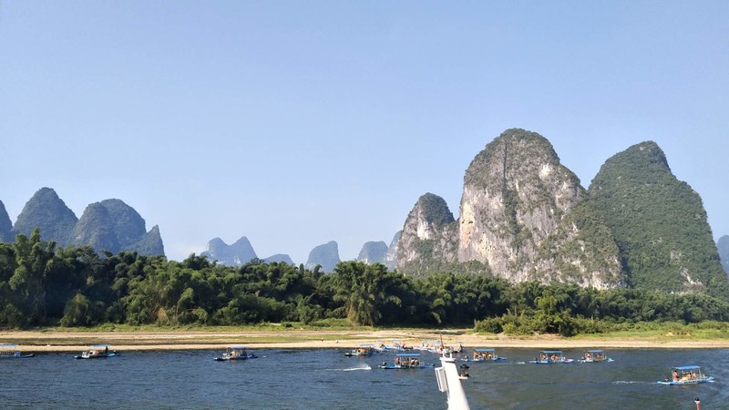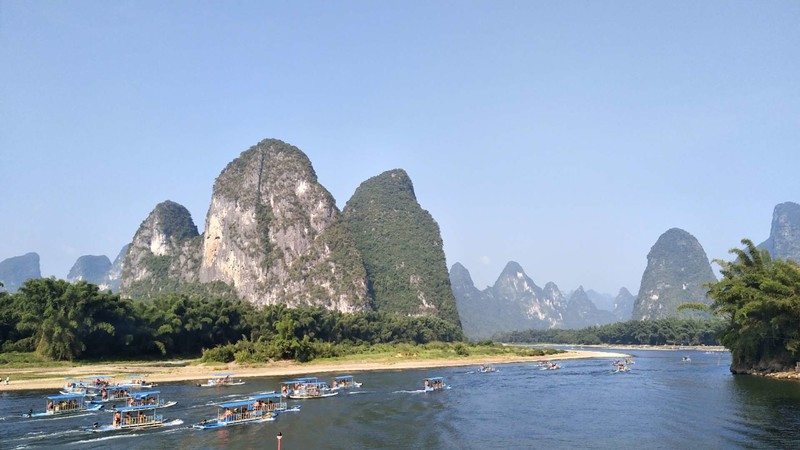 沿途我们又参观了大榕树景区。古榕公园以其天下独有的岩溶地貌和山水田园风光闻名世界,园内有一棵植于隋代、距今1400 多年巨大榕树而得名。韵律优美的稻田、清澈见底的小河、青翠湿润、清新爽人的空气,似一幅至上的中国水墨山水画。风靡中国及东南亚区的电影《刘三姐》很多镜头在此拍摄,刘三姐和阿牛哥在大榕树下抛绣球喜结良缘,使大榕树更充满厂美丽动人的爱情故事传奇,丰富多彩的民族文化,让人流连忘返