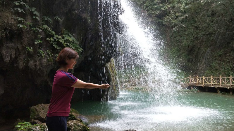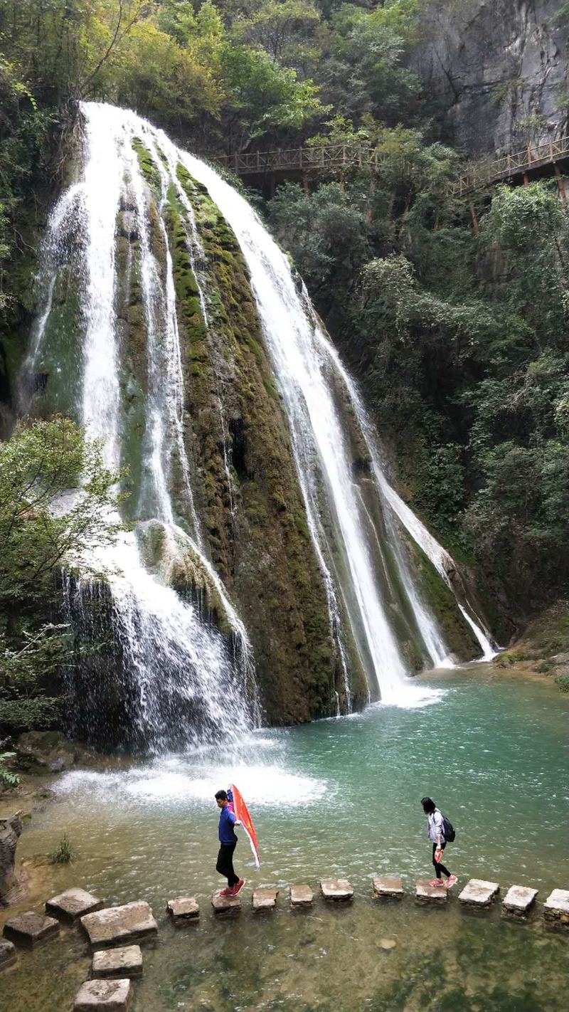 我很美,长发如瀑美在水。从山顶倾泻而下的七彩瀑、神形俱备的雄鹰瀑、白绸般一波三折的三叠瀑、沿着峭立的岩壁飞泻而下顿时抛洒万千珍珠的香水瀑……我像待嫁的新娘,按捺不住饱含激动的期待和欢快的歌声。