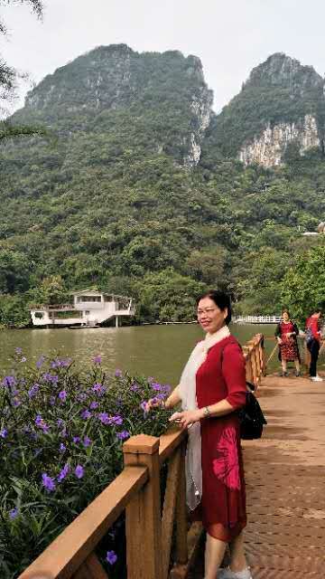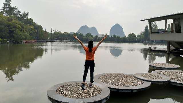 芦笛岩出来,一个休砌完整的人工湖,湖面与远山相辉映,桂林山水甲天下的初造型已经引起人们的关注,纷纷拍照合影。要把美景尽收眼底。