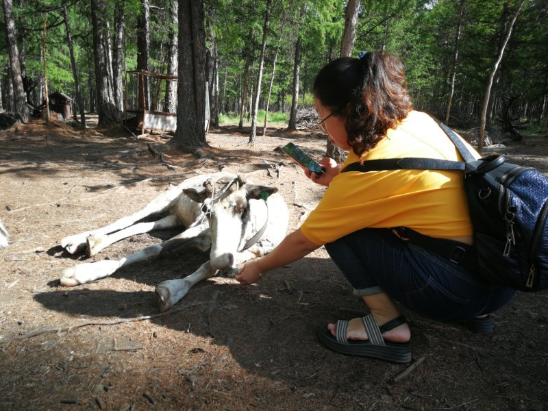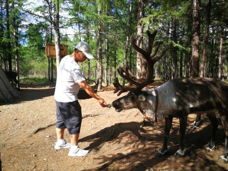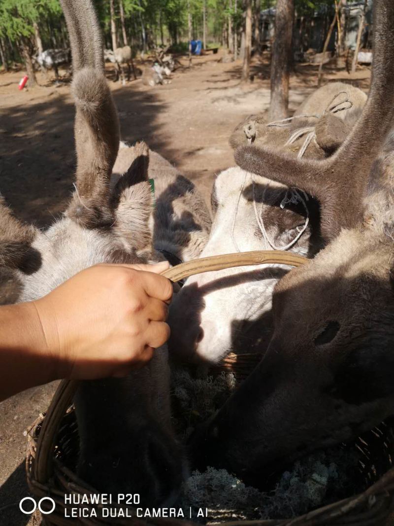 喂驯鹿,是我家妞妞最想做的。大兴安岭深处的鄂温克族牧民散养的驯鹿吸引着我们。在敖鲁古雅原始部落,妞妞拎着小竹篮,给驯鹿喂着苔藓,几次想喂几次又缩回小手,怕怕地看着鹿群,