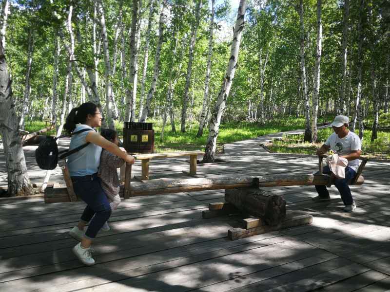 午饭后,我们来到了白桦林,不由自主地哼唱起扑树的“白桦林刻着那两个名字,他们发誓相爱用尽这一生”。在林间寻觅,哪一棵树刻着他们的名字呢?慢慢在林间徜徉,眼前的树影渐渐模糊,仿佛跌进一个久远的童话里。自带浪漫气息的白桦林,就这样一片又一片地躺在大兴安岭森林和呼伦贝尔草原的怀里。