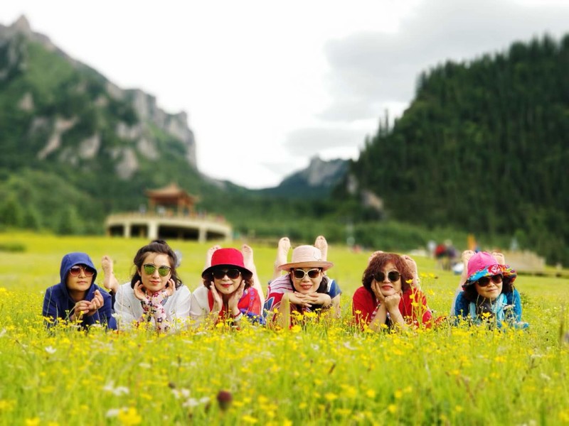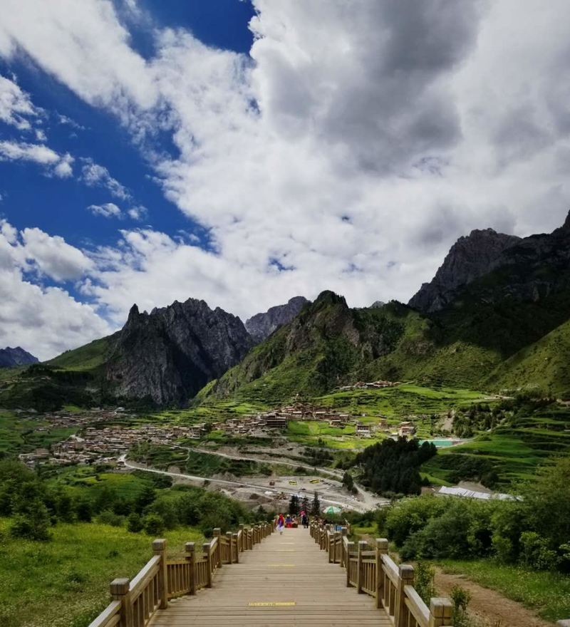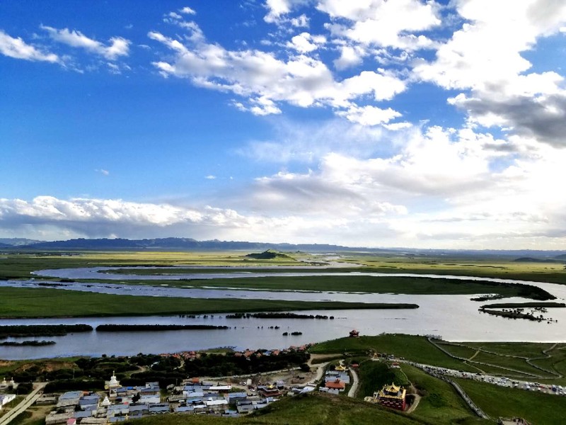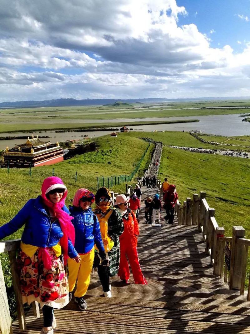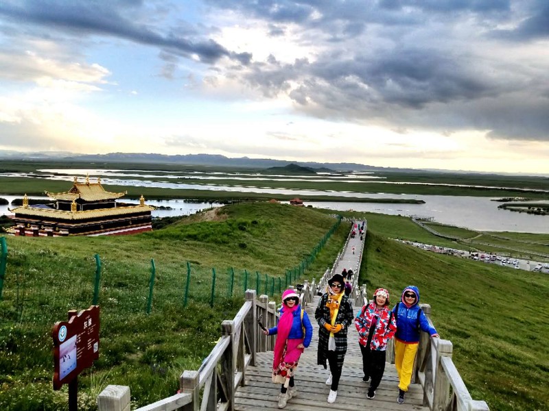 郎木寺镇的白龙江把郎木寺一分为二,一边是甘肃郎木寺,一边是四川郎木寺,也叫格尔底寺。我们来到四川一侧的格尔底寺,格尔底寺地势比较开阔,成群的牛羊在寺院旁的草场上悠闲地吃草,寺院的喇嘛在大殿里庄严地诵经。进格尔底寺,可以见到雄伟瑰丽的四个大殿,闻思院,也是主殿即大雄宝殿所在,医学院、时轮殿和护法殿,木瓦木楼的僧舍建于其中,随山势层层叠叠,喇嘛们的红僧衣时隐时现。大雄宝殿旁是最负盛名的肉身舍利塔,这里供奉着五世格尔登活佛的法体,这是全藏区历史最长、保存最完好的肉身法体,尽管时光已过去了200多年,但肌肤仍有弹性,面容仍然如昔,在每天的诵经声中佑护着信徒的平安吉祥。因为不允许拍照,所以我们怀着虔诚的心绕着活佛的肉身法体在大殿走了一圈。