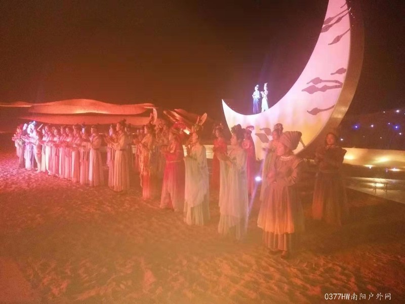 晚上十点半,我们准时到达《敦煌盛典》演出地,观看了这场美轮美奂的演出。《敦煌盛典》以画师墨丁和绿珠公主爱情故事为主线,通过借助鸣沙山的大漠黄沙及敦煌山庄辉煌汉唐建筑群等实景,再造包裹式洞窟、月牙泉等舞美场景。独创360度旋转可前后移动观众席,全新运用墙体秀、裸眼3D、全息影像等现代舞美前沿科技。再现古丝绸之路重镇敦煌历史文化与人文风貌,让观众穿越时空隧道,领略两千多年前敦煌的文化气息。整场演出气势恢宏磅礴、场面奇幻绚丽,绝对是一场视觉盛宴。