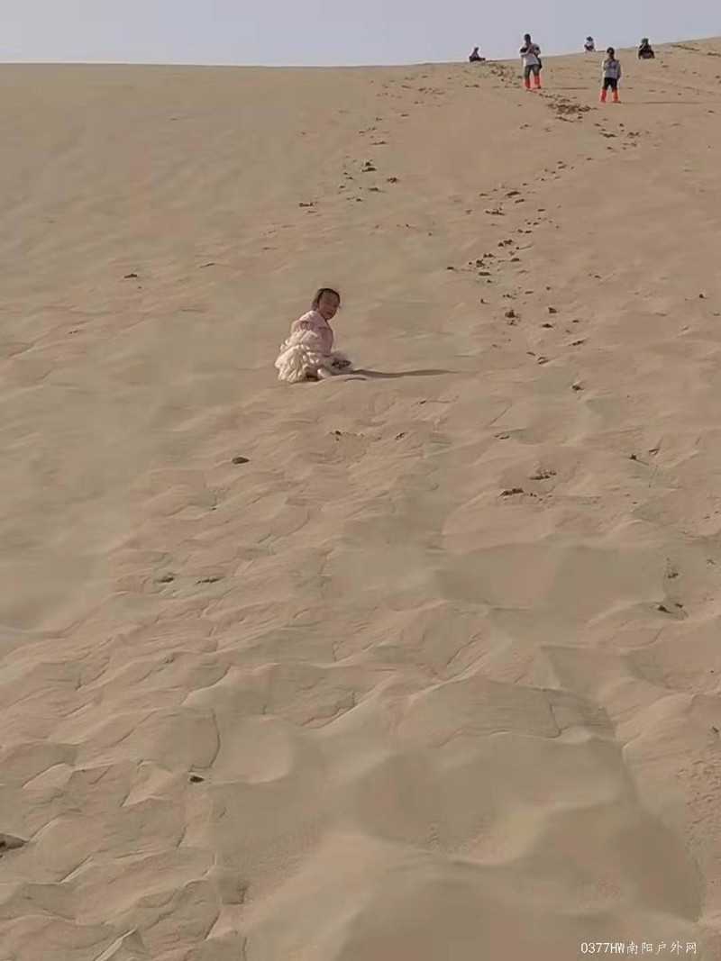 没想到的是,小妮看到沙山比我还激动。招呼都不打,哧溜哧溜地开始往上爬,我在下边累得气喘吁吁,终究还是没能追上她。