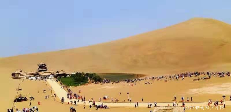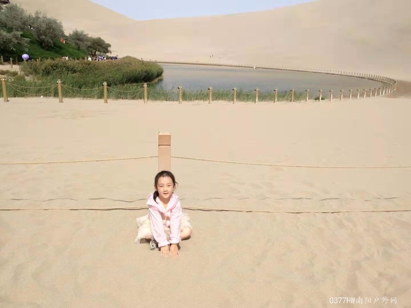 上午,我们来到了大家心心念念的鸣沙山月牙泉。少时读三毛的《撒哈拉沙漠》,我和金娜美女一样,特别向往原始的大沙漠,渴望一场骑着骆驼背着水壶穿越沙漠的旅途,挑战身体的极限。鸣沙山满足了我们眺望一望无垠的沙漠的愿望,满足了我们一睹沙漠之舟的风采,领队说挑战大沙漠,还是得三思而后行。