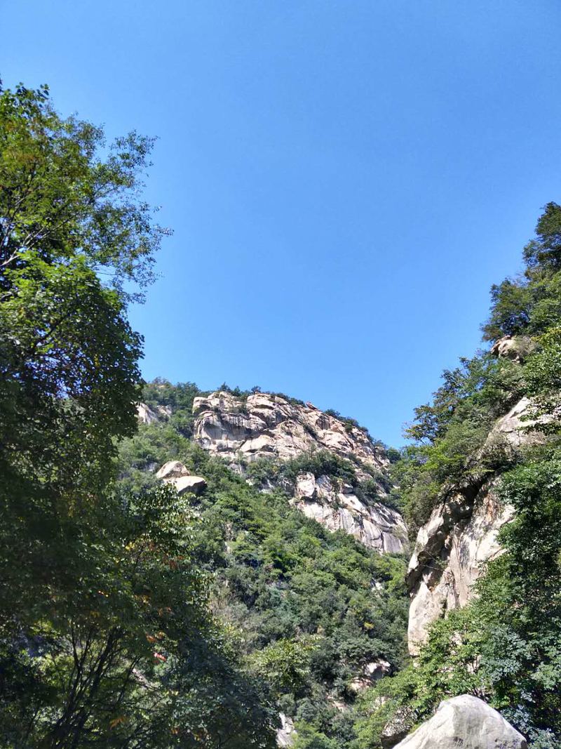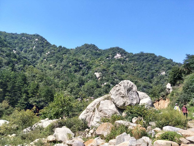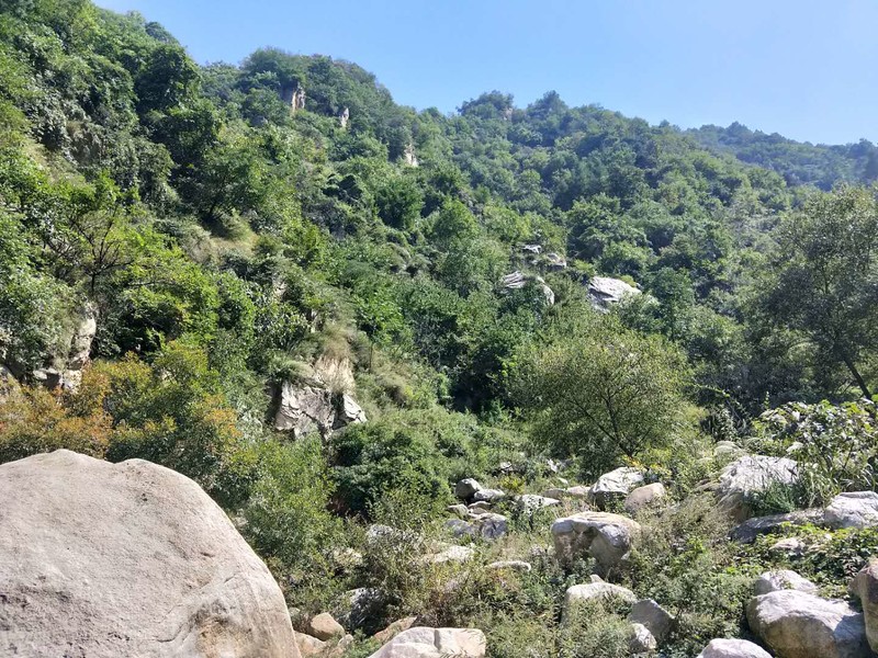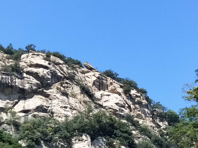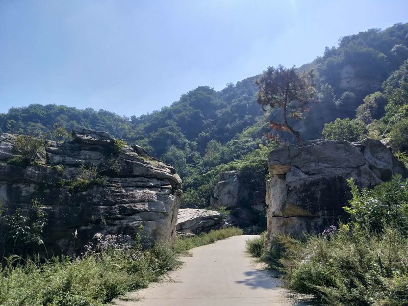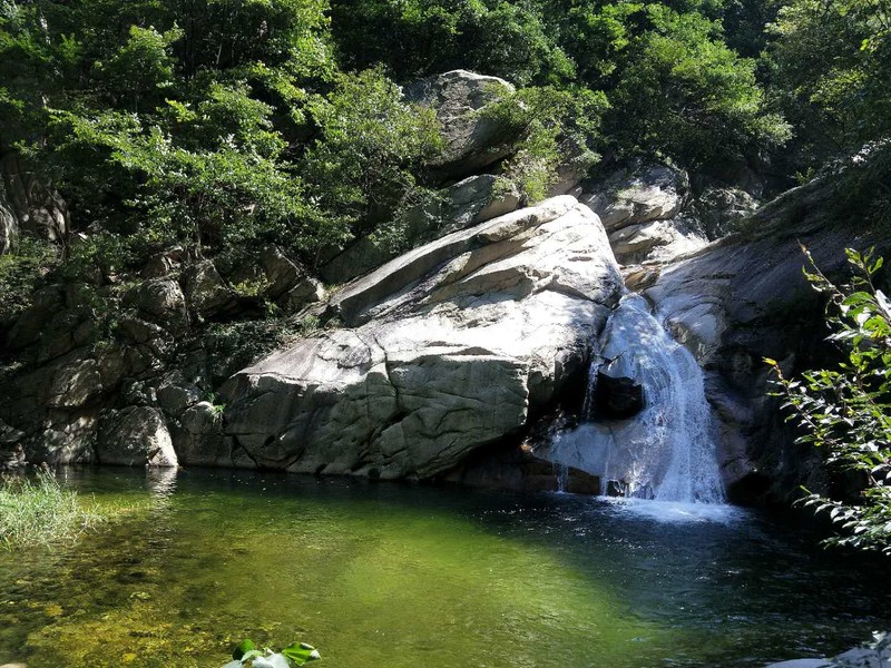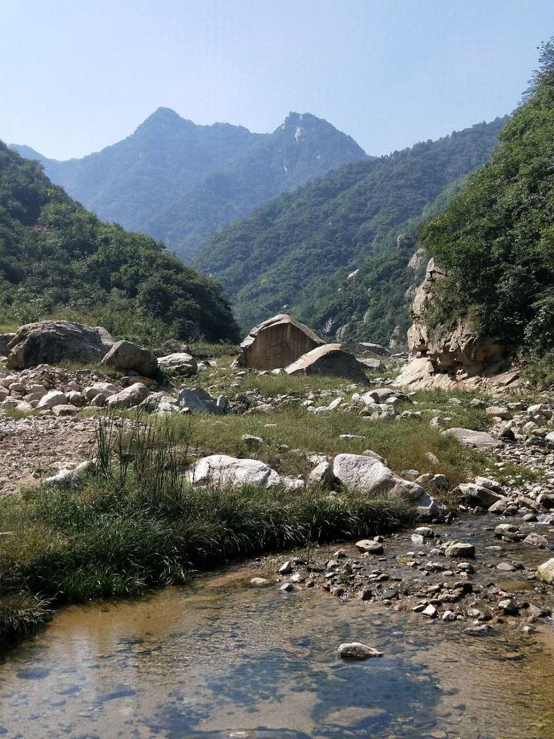 原来名字叫五道潭,还有一个名字叫龙潭沟。这些名字俗气,叫这名字的景区多了去了,数不过来。牌坊上上书三个大字:皇拜谷。新名字大气上档次。清新脱俗,不入凡尘。从下车到景区门口要走四公里的山路。太阳当头照,晒的心发焦。都是无名火,谁惹心先毛。小车可以进,大车不行。这是一个没有开发成功的景区,还是环线。可惜由于路途遥远,时间都抛洒在路上了。向导说只能到三潭,分梯队开始寻水路而上。阵风习习清爽宜人,奔走在第一梯队。走过一个一个名字拟人的景点,匆匆而过,来到了头道潭,休息等后续人员。久久久久,向导说三潭也去不了了,没有回的时间。大部分人都停留一潭休息玩耍,午餐。三男两女几人继续二潭出发。二潭之水没有一潭水量大,但也不失特色。山里的就是这样的,一潭一景,一潭一貌,各领风sao数百年。向上稍微一点,老鹰窝。不走了,支起锅灶我要吃饭。