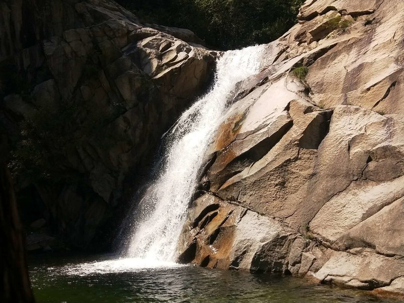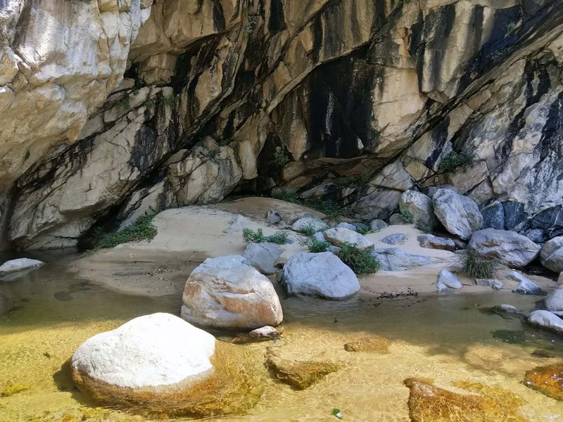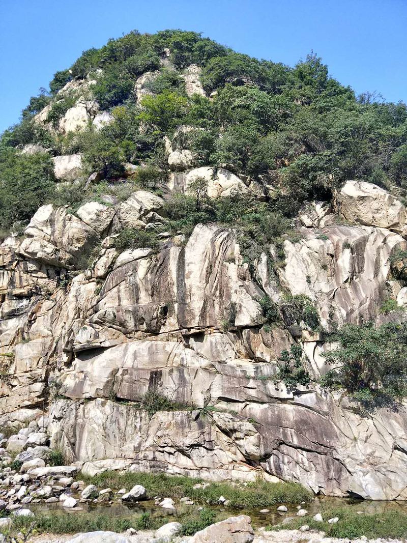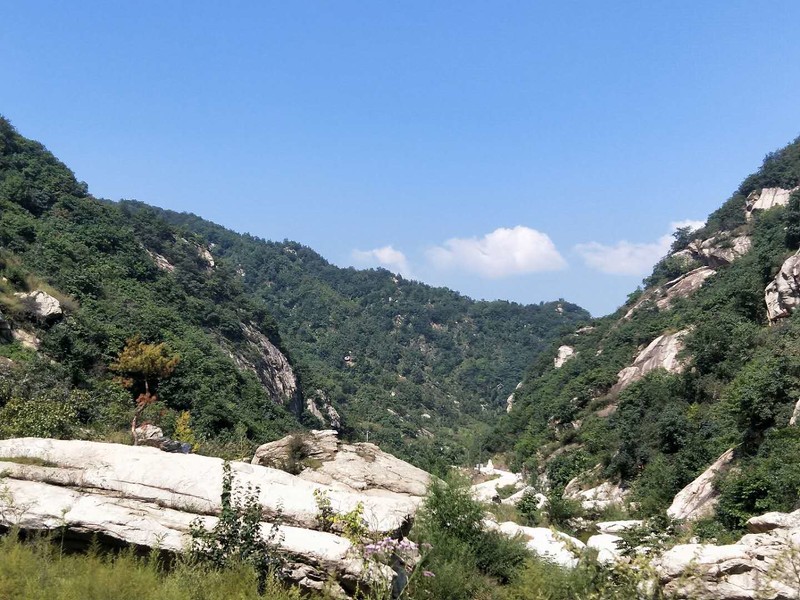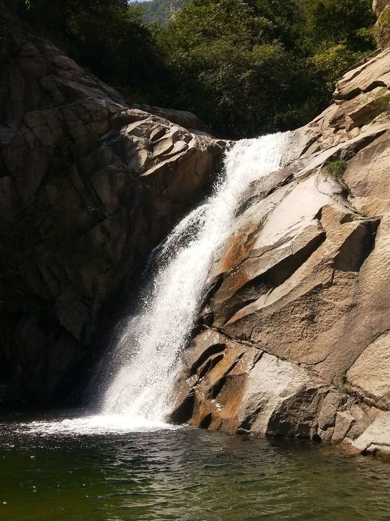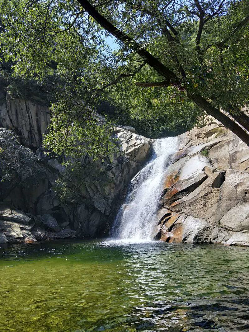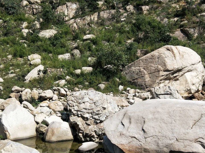 原来名字叫五道潭,还有一个名字叫龙潭沟。这些名字俗气,叫这名字的景区多了去了,数不过来。牌坊上上书三个大字:皇拜谷。新名字大气上档次。清新脱俗,不入凡尘。从下车到景区门口要走四公里的山路。太阳当头照,晒的心发焦。都是无名火,谁惹心先毛。小车可以进,大车不行。这是一个没有开发成功的景区,还是环线。可惜由于路途遥远,时间都抛洒在路上了。向导说只能到三潭,分梯队开始寻水路而上。阵风习习清爽宜人,奔走在第一梯队。走过一个一个名字拟人的景点,匆匆而过,来到了头道潭,休息等后续人员。久久久久,向导说三潭也去不了了,没有回的时间。大部分人都停留一潭休息玩耍,午餐。三男两女几人继续二潭出发。二潭之水没有一潭水量大,但也不失特色。山里的就是这样的,一潭一景,一潭一貌,各领风sao数百年。向上稍微一点,老鹰窝。不走了,支起锅灶我要吃饭。