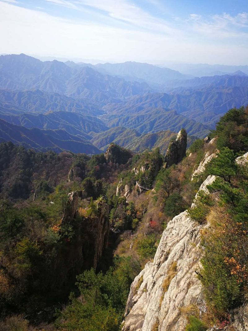利用周末两天,参加了户外组织的老君山两日游!一行人在阳阳帅哥带领下,游览了鸡冠洞,老君山!尤其是老君山给大家留下了深刻的印象:沿着镶嵌于山壁里的长廊,漫步在十里画屏,奇峰怪石林立,树叶从青,黄到红参差不齐!蓝天,白云,仿佛与你很近,很近!处处感知着道教的文化。这里的景致,文化确实值得称道!虽然游览的时间短暂,但是不乏收获。期待闲暇之余,再去细细品味!