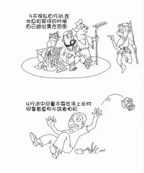 4.行进中手上尽量不要长时间拿着食 物、水以及相机