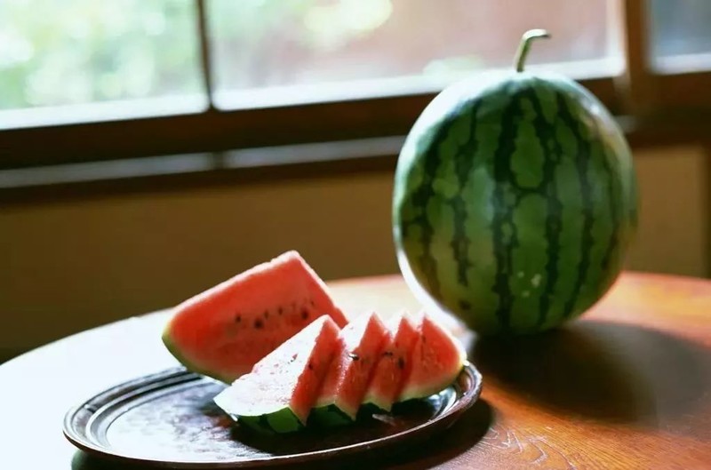 黑色的花纹,薄薄的绿皮,红色的瓜瓤,吃起来唇齿甘甜。