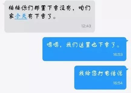 “孩子,你那里下雪没有,咱们家今天下雪了。