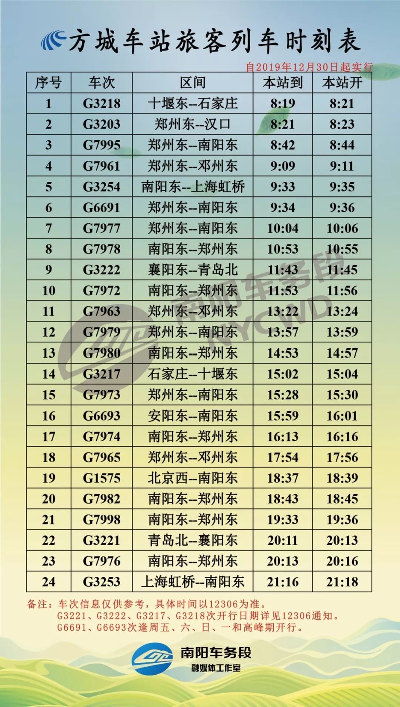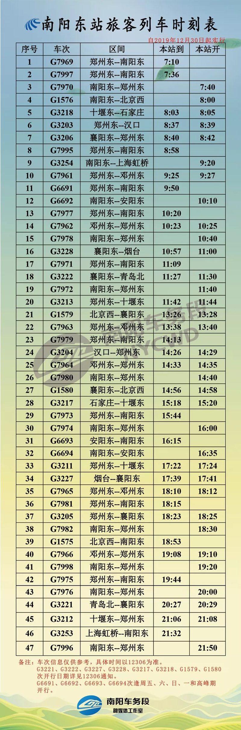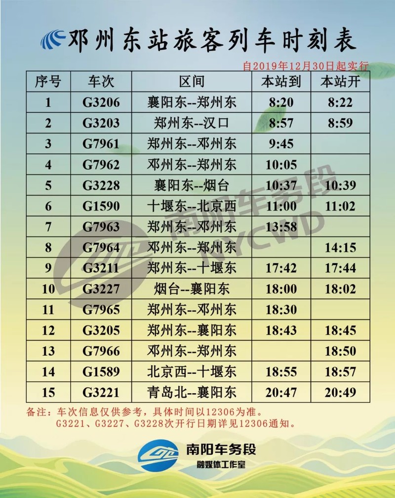 新增G3217/8十堰东至石家庄、G3227/8烟台至襄阳东、G3221/2襄阳东至青岛北3对列车,开行日期详见12306网站通知