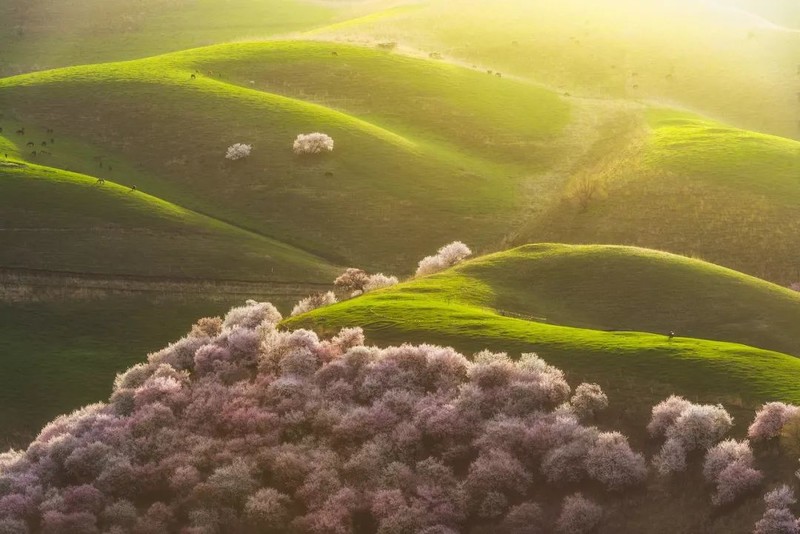 4月杏花、5月红花、6月薰衣草,7月昭苏花海...