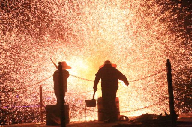打铁花,是流传于豫晋地区民间传统的烟火,起源于春秋战国时期,鼎盛于明清时期,至今已有千余年的历史。中国月季园千年铁花秀表演每场时间为30分钟,用铁2000斤,用工300人次,分为四个片段,叙述中华民族诞生以来的曲折历程,让您感受太行人民5000年来砥砺前行的铁血浪漫。