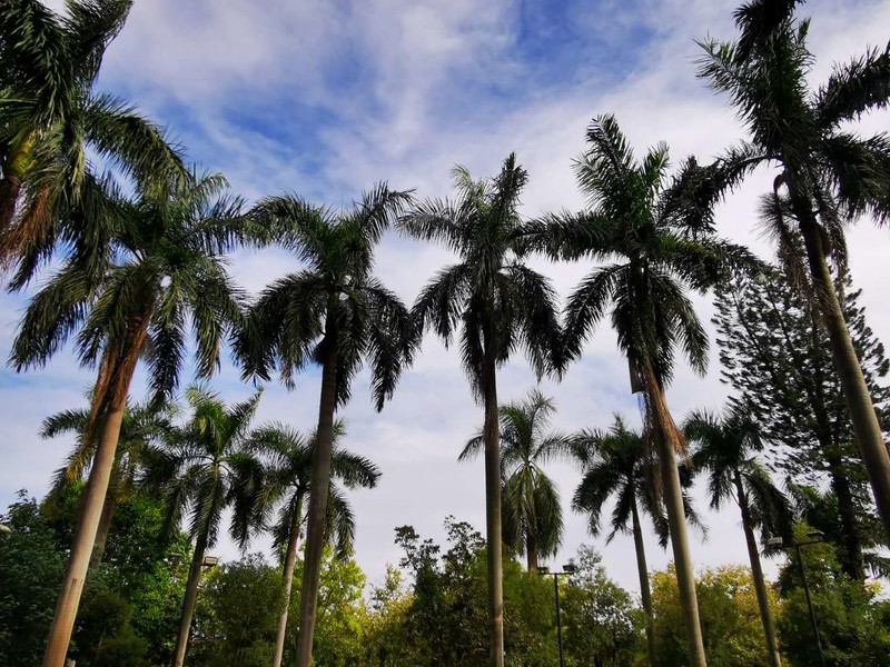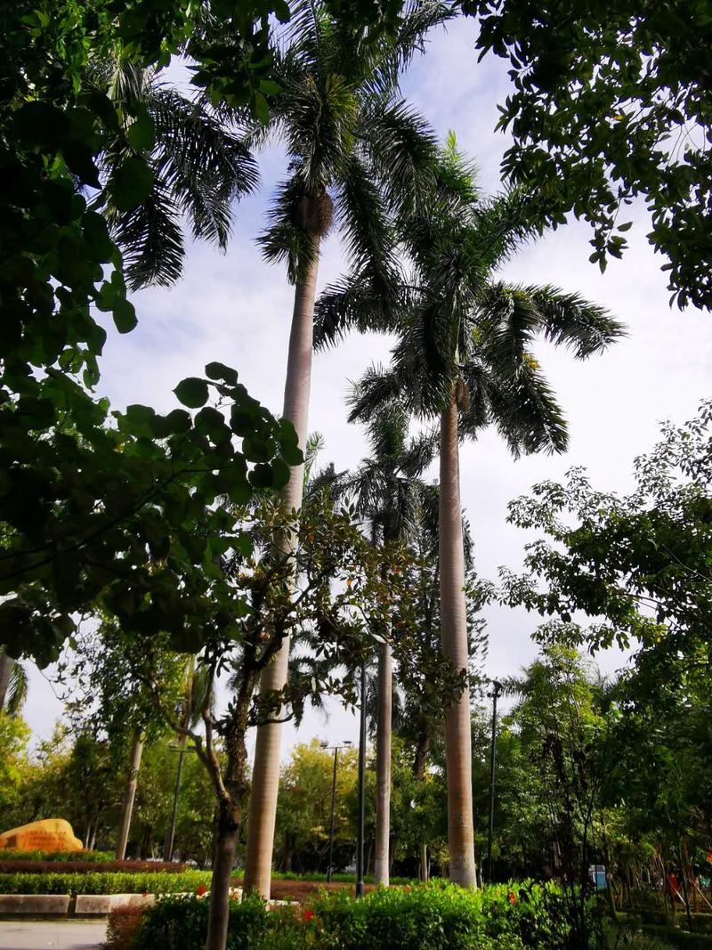 西湖美景,三月天奶,我想起了这句歌词,逛西湖的时候,满脑子都是这个曲调。这里既有热带的韵味,又有北方的大气,蓝天白云下,大王椰挺立,煞是好看。