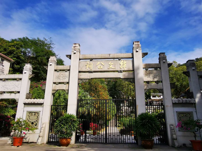 韩文公祠,即韩愈纪念馆。北宋咸平二年(999年)由潮州通判陈尧佐于金山麓夫子庙正室东厢辟建“韩吏部祠“。苏轼为此写下了著名的《潮州韩文公庙碑》,称韩愈“文起八代之衰,道济天下之溺。”遂成天下定论。元佑五年(1090年)潮州知州王涤徙至州南七里,苏轼为他撰写了《潮州韩文公庙碑》,及至南宋淳熙十六年(1189年),潮州知州丁允元认为韩公尝游于笔架山并手植橡木, 刻遂将原本在城南七里的韩文公祠迁建于此。