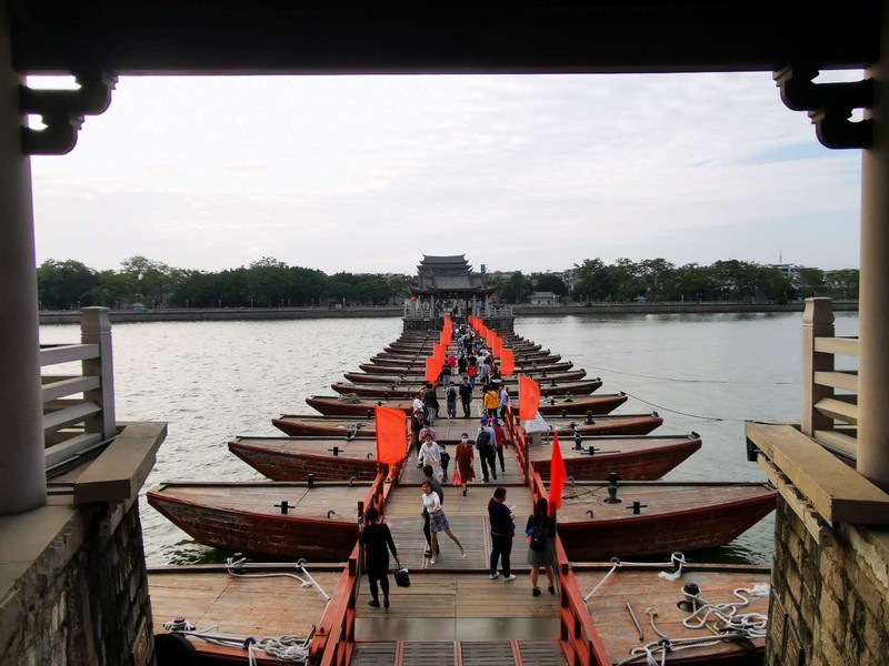 整座广济桥两边是石桥,中间是木船相连,白天过人时是浮桥,下午五点开始把小木船收走,中间就可以过大船了,古代人的智慧点赞