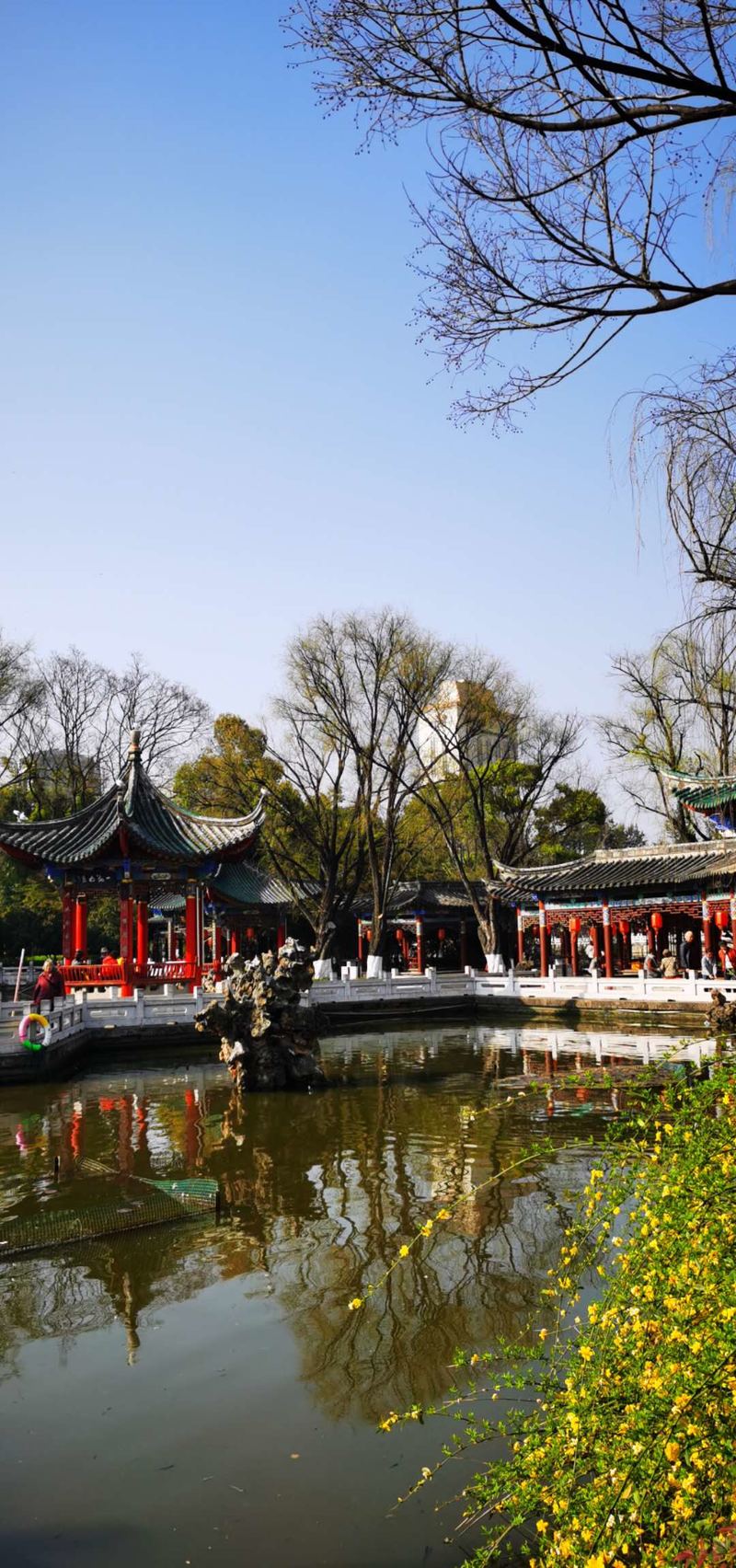 翠湖公园位于昆明市区的螺峰山下,五华山西麓,云南大学正门对面,原名菜海子。这里最初曾是滇池中的一个湖湾,后来因水位下降而成为一汪清湖。