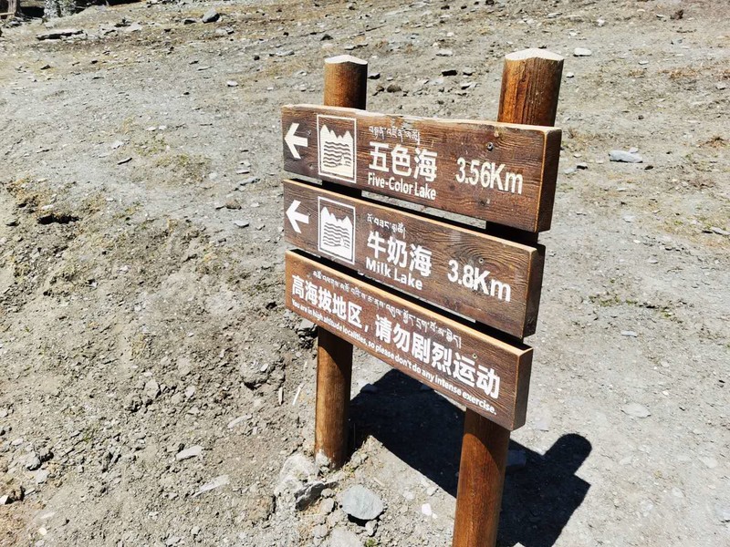 我们入住海拔4千多米的亚丁村,收拾完毕,向着牛奶海出发。原以为不就来回10几公里,哥也曾徒步13公里没事,可我们都忘了一件事,高反,海拔,真的是平地走几千步,高原只有几十步,喘,喘,喘。挑战着极限和体能,抱着都能上,我也能的态度,终于攀登牛奶海。