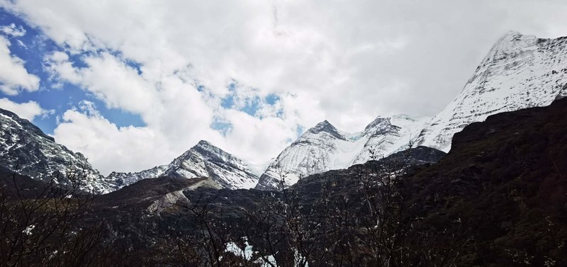 告别了亚丁,一路前行,真的是翻过了几道弯,越过了几座山。走一路,行一步,真的是天边的云彩在你身边游走,我看见一座座山,一座座山川相连。又经过了兔儿山,雪山,蓝天,一切就是那么的顺理成章。
