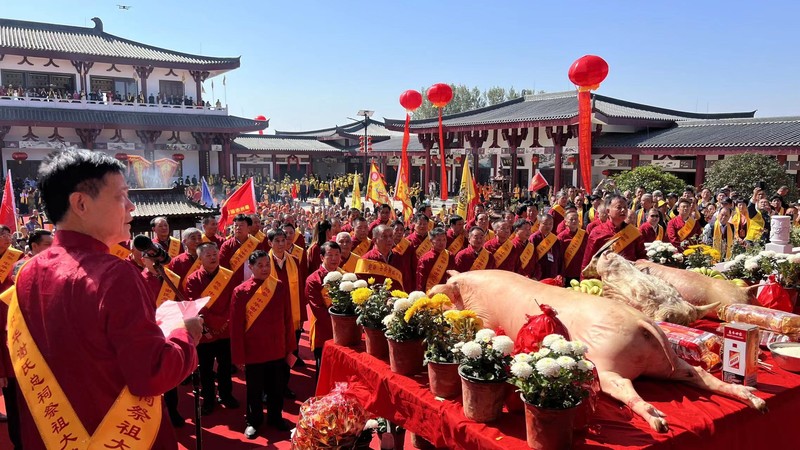 15日上午中华谢氏总祠进行庆典仪式,祭拜先祖,热烈、虔敬。