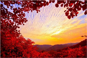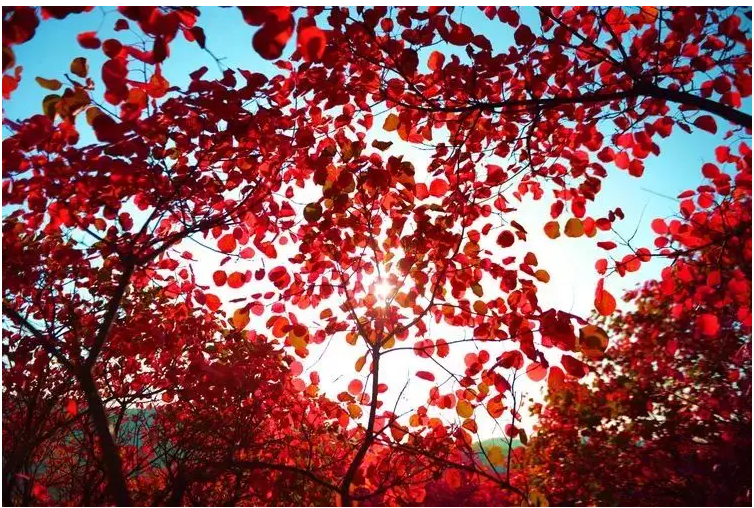 古人以“停车坐爱枫林晚,霜叶红于二月花。”这句诗用来形容霜打过的红叶更红更美,赞美红叶不怕风霜、顽强抗争的精神。