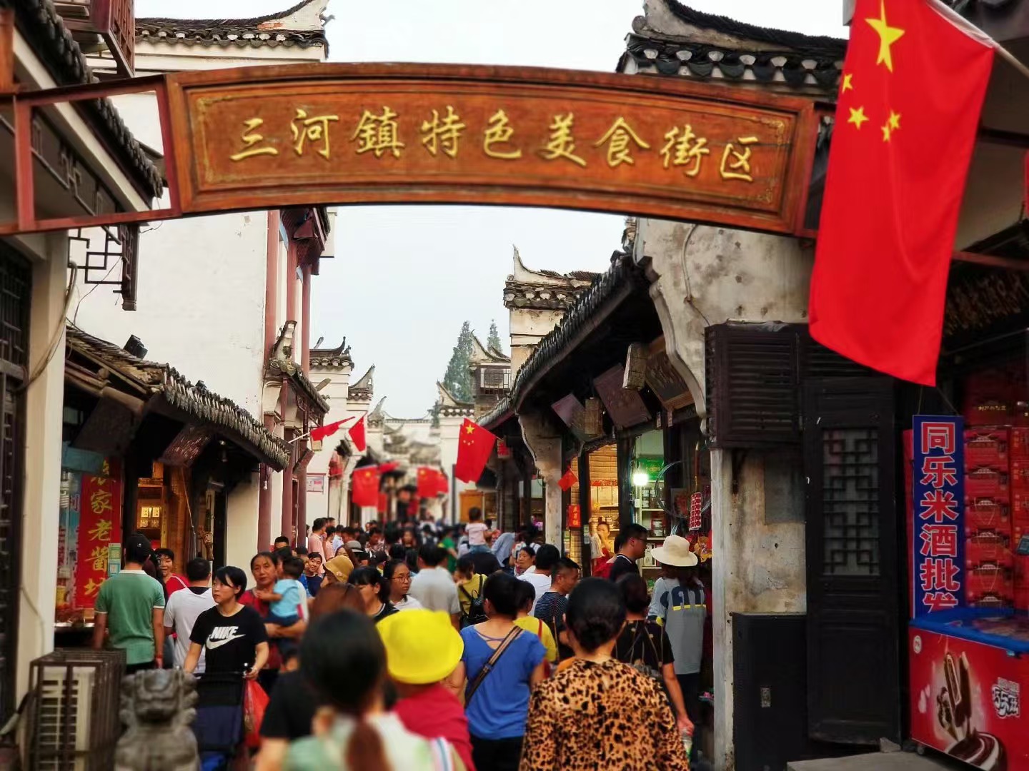 三河古镇位于合肥至黄山、九华山的黄金旅游线上,离合肥市区40公里,因丰乐河、杭埠河、小南河三水交汇而得名,距今已有2500多年的历史,面积4.71平方公里,以八古(古河、古桥、古圩、古街巷、古茶楼、古民居、古庙台、古战场)诱人,具有典型的“小桥流水人家,水乡古镇特色”。素有“游在黄山,食在三河”之誉。