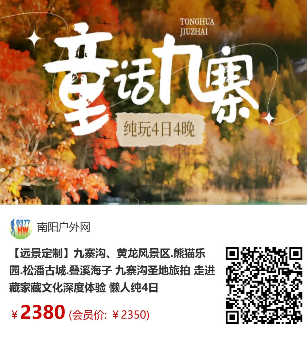 (2)九寨沟面积较大游客需求不一,因此主要以游客自助游形式游览,如无领队陪同望您谅解。游览开始前领队会与您约定好集合时间,请务必按时到达指定地点,避免耽误大家接下来的行程;